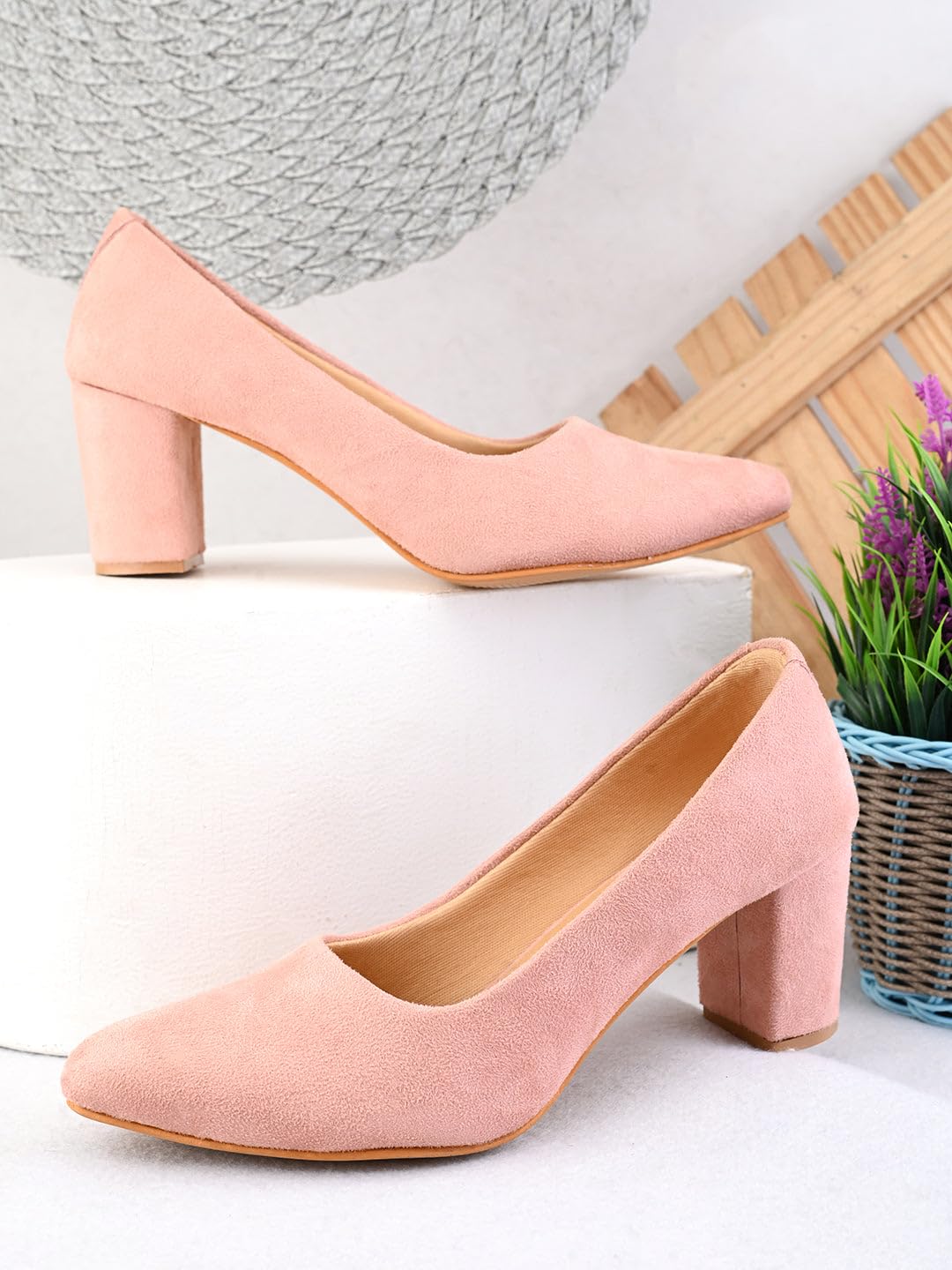 XE Looks Classic Pumps | Chic Suede Finish | Comfortable & Stylish Block Heel For Girls & Womens