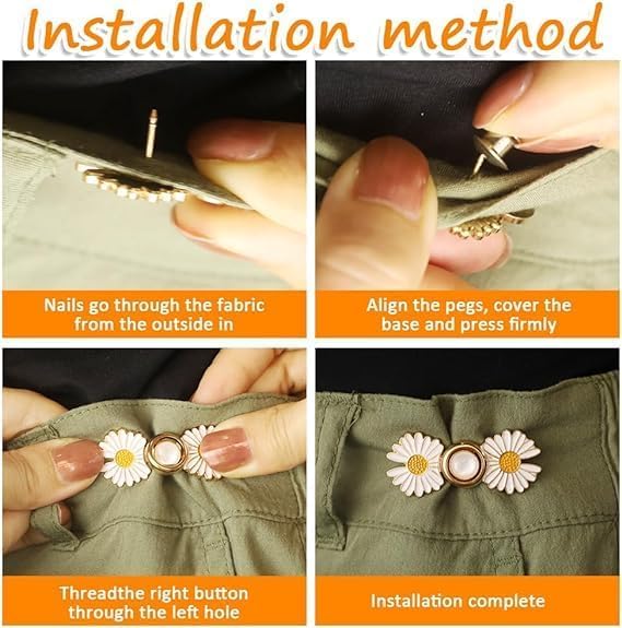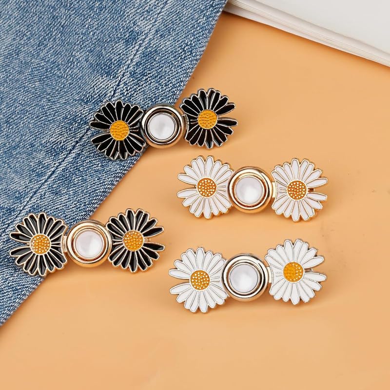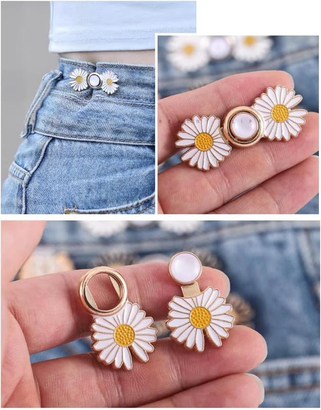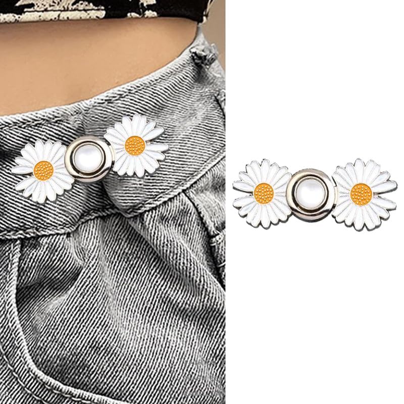 XVIA Jeans Waist Button Pin, Tighten Waist Button Pin Cute Daisy Tighten Waist Button Waist Buckle Adjuster Waist Buckle Clip for Pants Skirts-(2-PAIR)