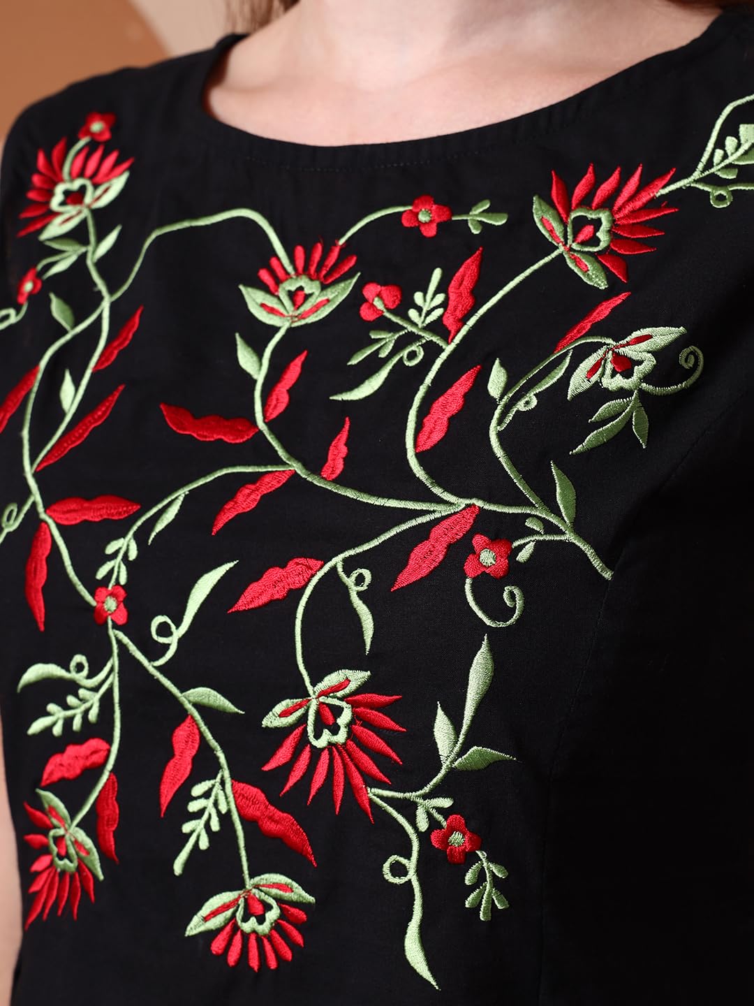 Yash Gallery Women’s Rayon Slub Embroidered Straight Regular Fit Top for Women