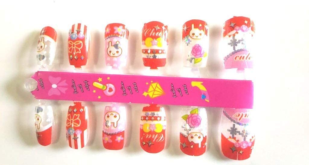 YBN Designer Nail Arts Set of 3 Different Colored Attractive Baby Artificial Nails With Polish Nail Art Kit for kids Girl’s Multicolor Pack 1