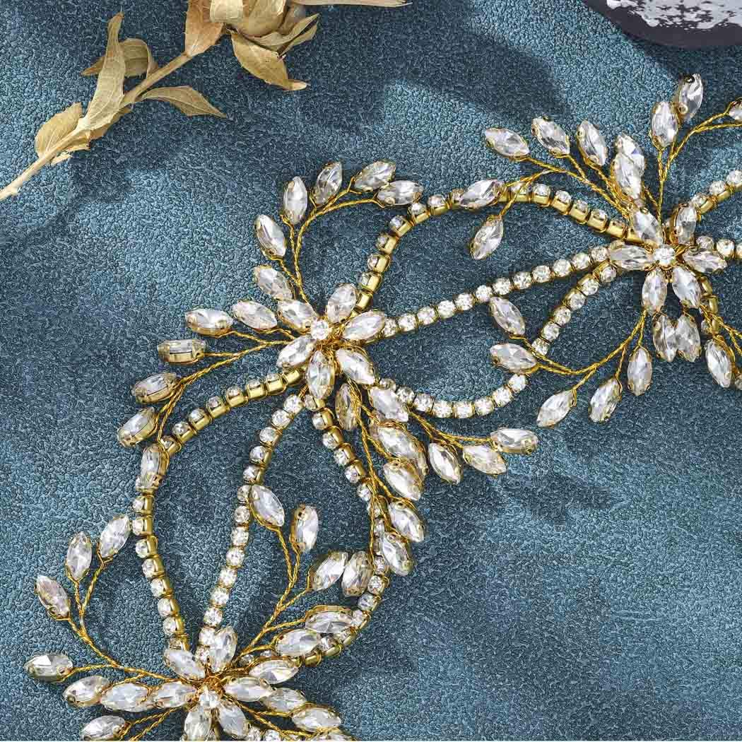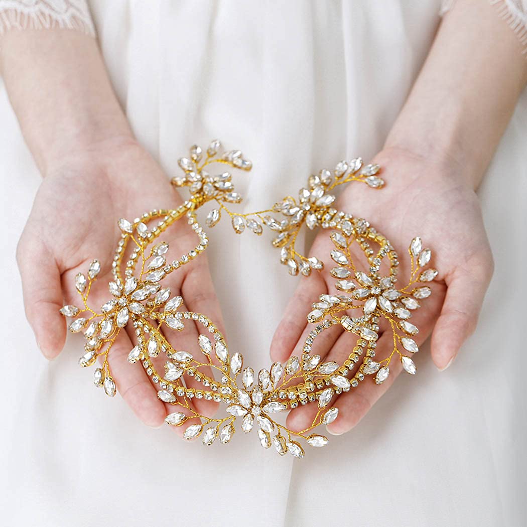 Yean Bridal Hair Vine Rhinestone Crystal Hair Piece Gold Wedding Hair Accessories for Women and Girls