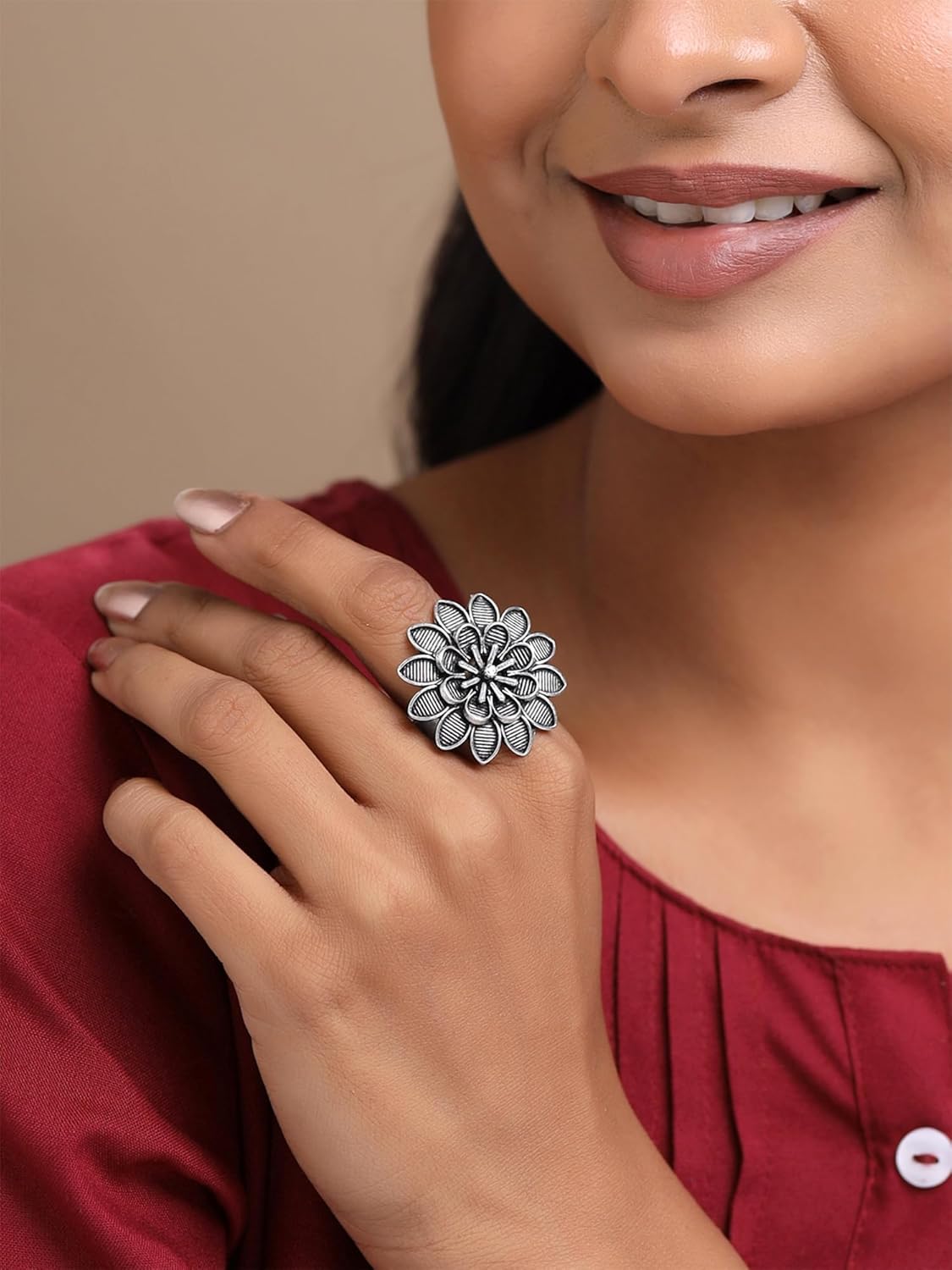 Customers find the ring beautifully crafted and appreciate its adjustable design.