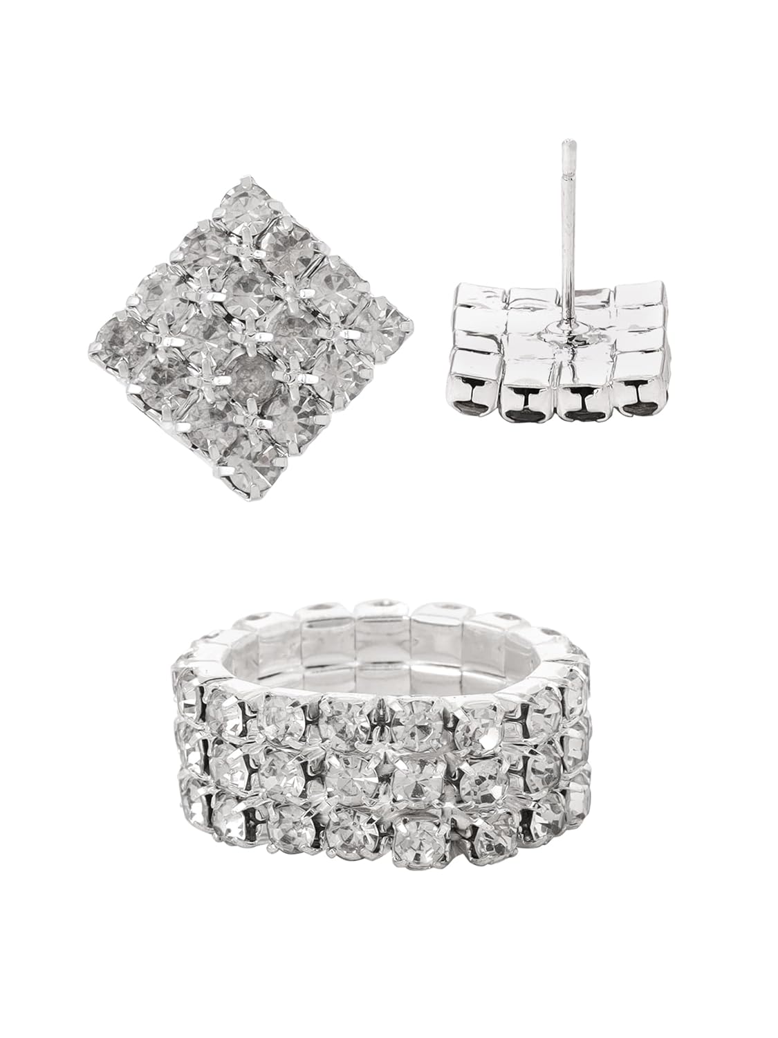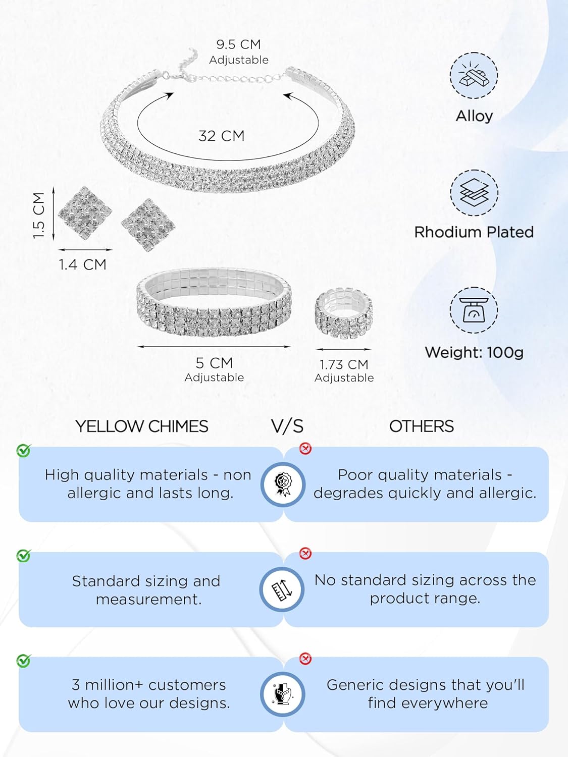 Yellow Chimes Crystal Jewellery Set for Women Crystal Jewelry Set Silver Plated Choker Necklace Set with Earrings for Women and Girls. (Design 16)