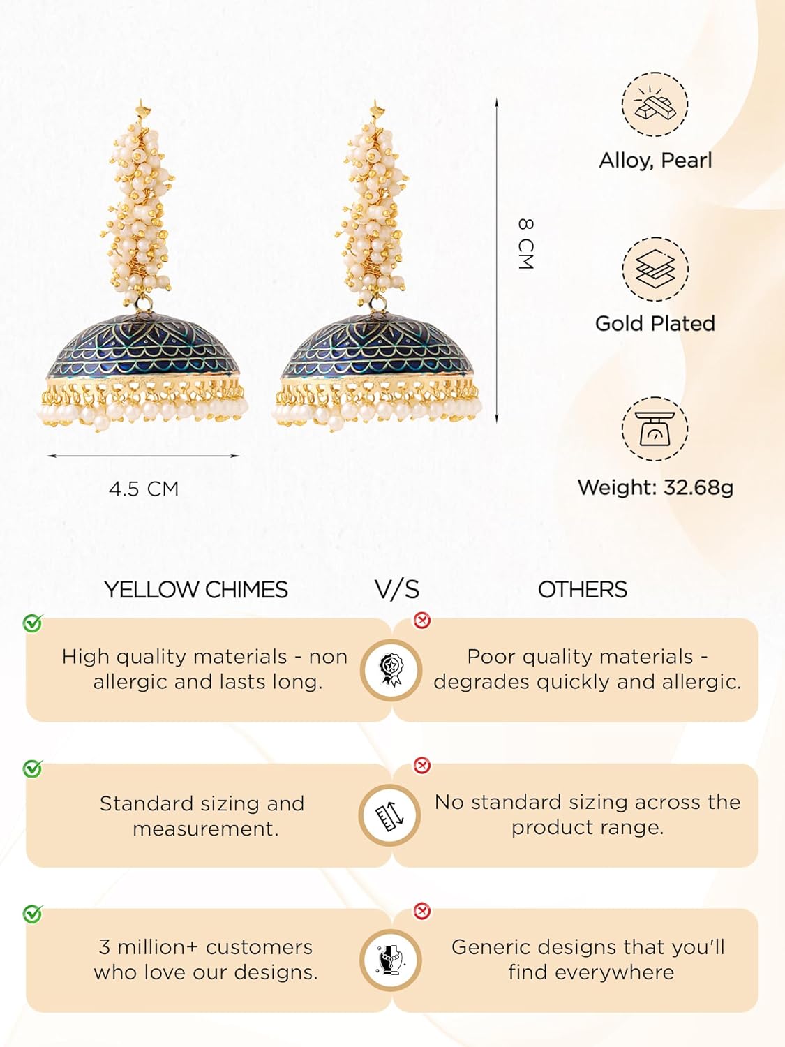 Yellow Chimes Meenakari Jhumka Earrings Handcrafted Gold toned Traditional Multicolor Jhumka/Jhumki Earrings for Women and Girls