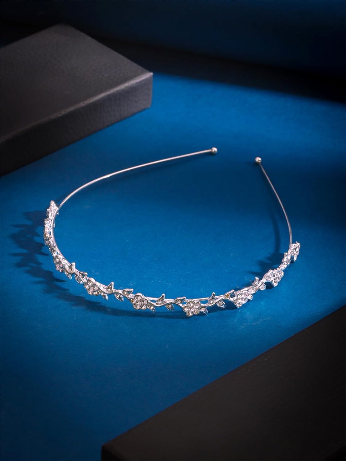 Yellow Chimes Tiara for Women and Girls Silver Gold Plated Crown for Women Floral Crystal Studded Bridal Wedding Crown Tiaras for Women and Girls Gift For Women & Girls Valentine Gift for Girls