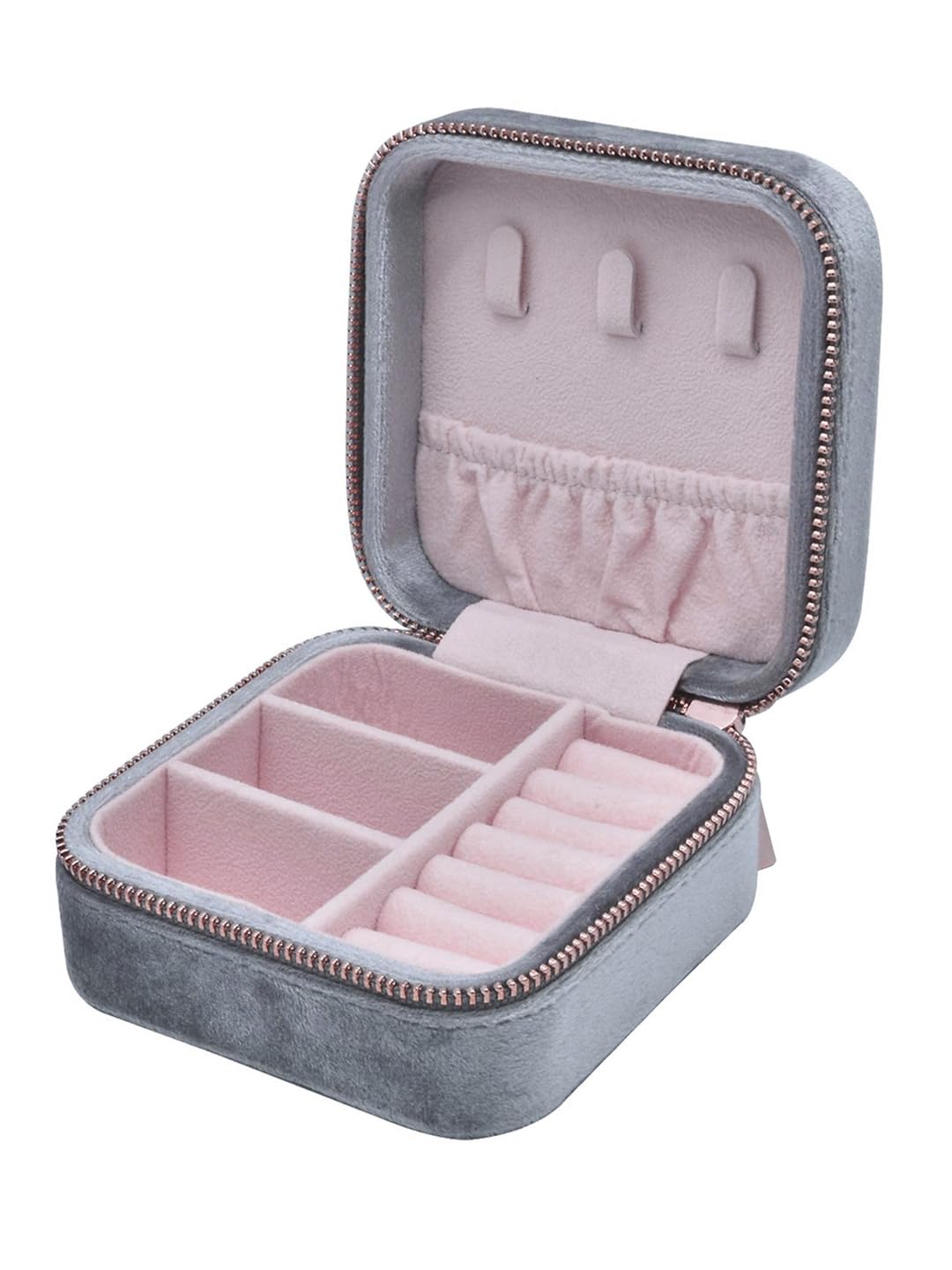 CUSTOMER NOTE: “JEWELLERY ITEMS ARE NOT INCLUDED WITH THE BOX”; COMPACT JEWELLERY BOX, STORAGE BOX: This stylish & creative jewellery organisers storage box with zipper keeps your small jewellery and other accessories organised beautifully. This handy is travel friendly and can be kept in your handbag as well while you travel. The dividers are removable to keep items like watches, lipstick etc. The compartment box for jewellery is the best gift for wife, a gift for a sister, daughter or mom.