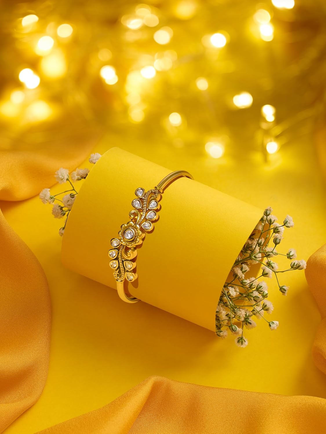 ZAVERI PEARLS Antique Gold Tone Plating Contemporary Cubic Zirconia Kada Style Bracelet For Women-ZPFK21794