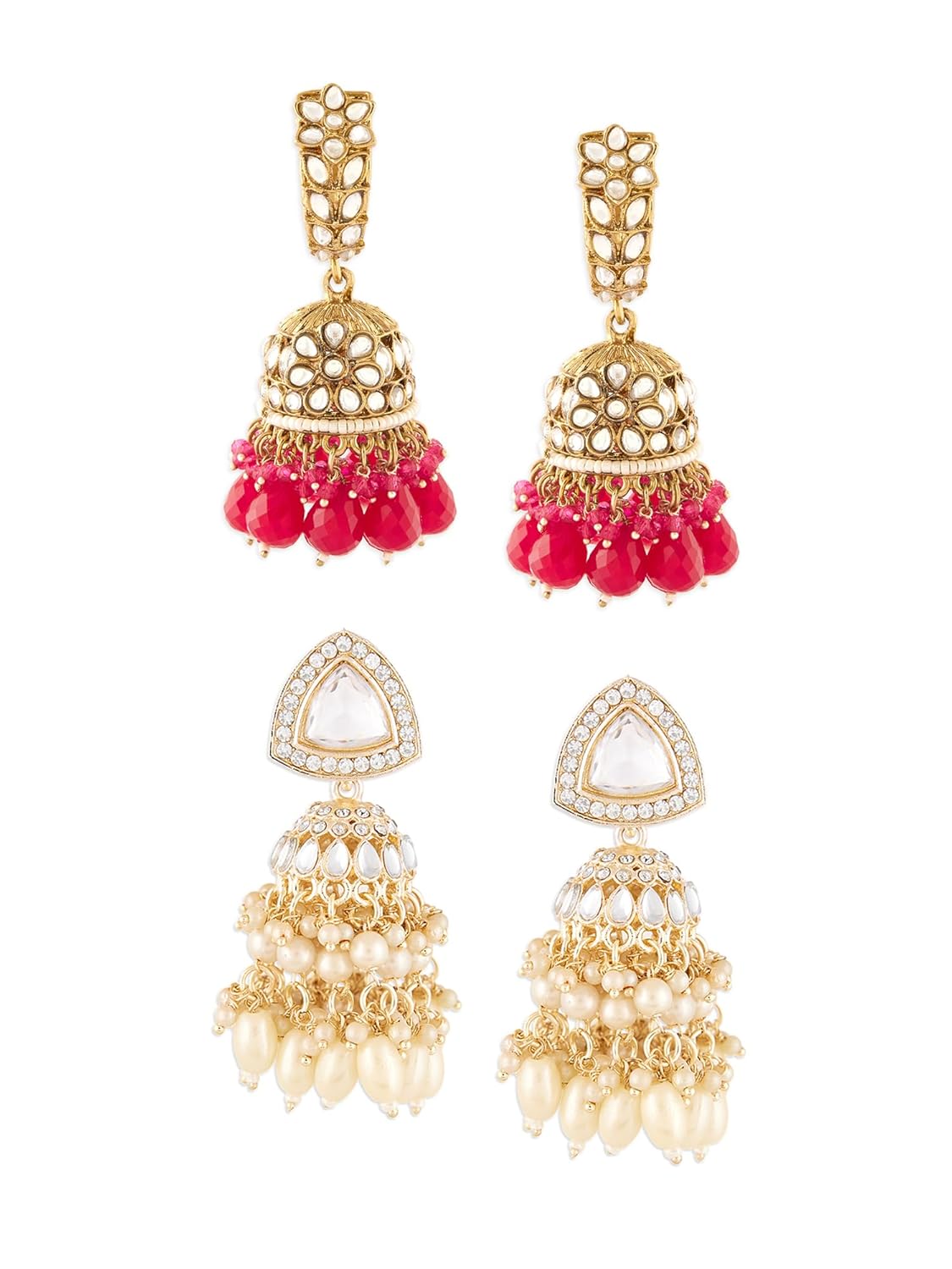 Zaveri Pearls Combo of 2 Pink Beads Dazzling Stones Statement Jhumka Earrings For Women-ZPFK21436
