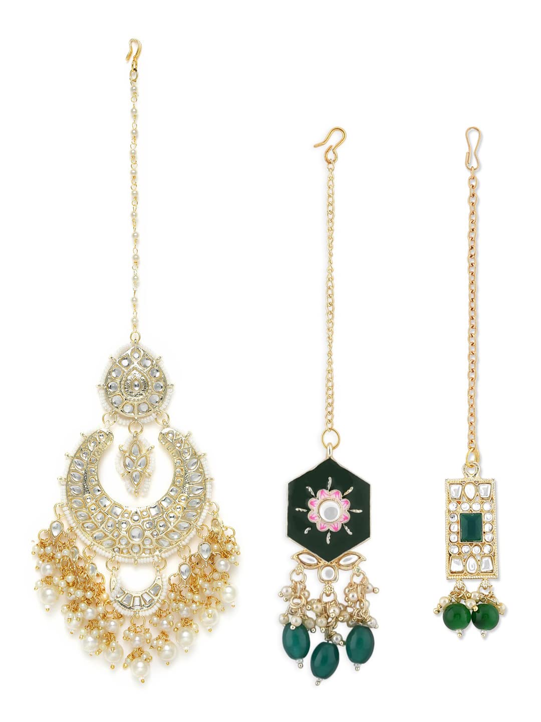 Zaveri Pearls Combo of 3 Gold Tone Kundan Maangtikka For Women-ZPFK13076