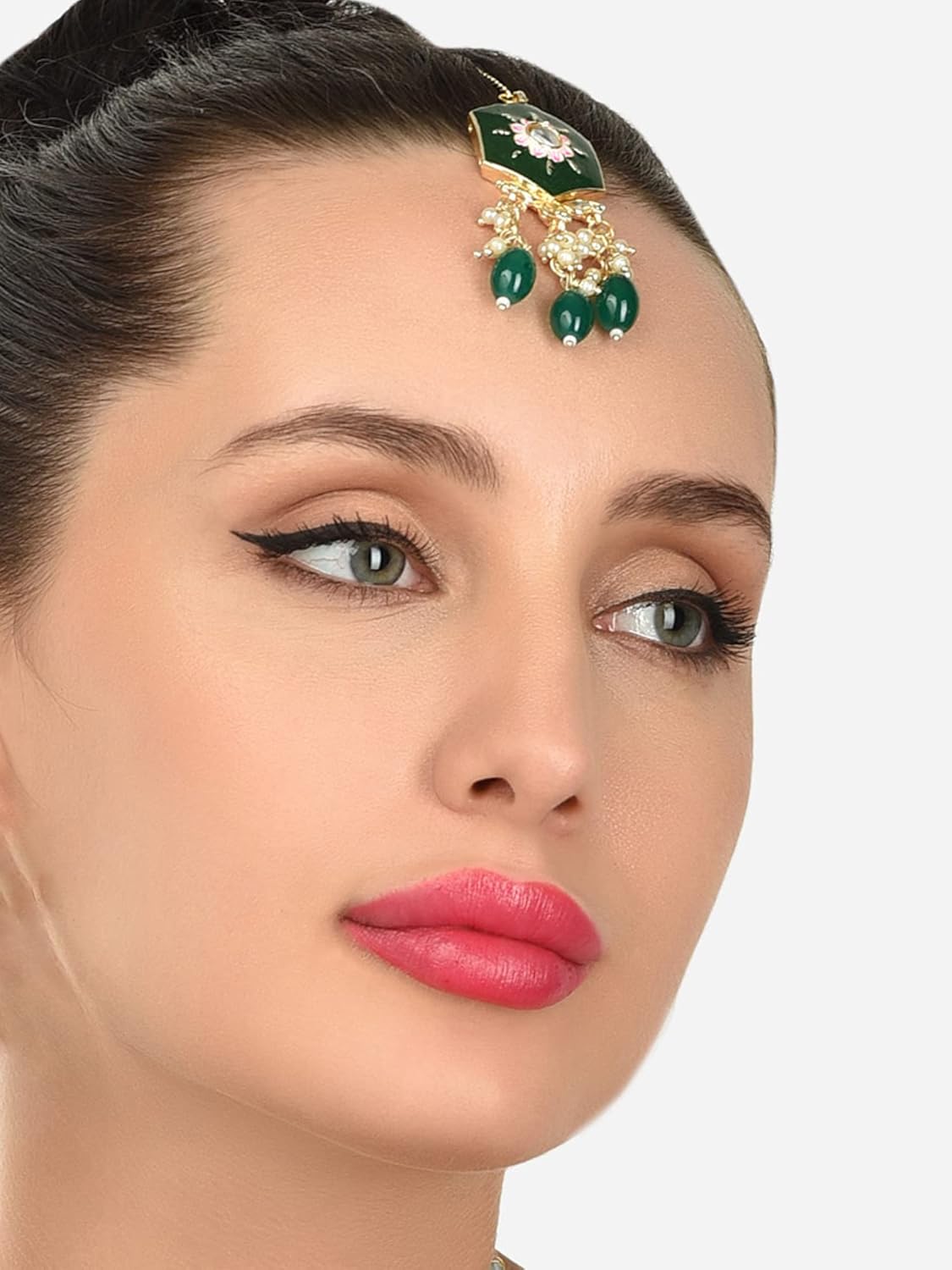 Maang tikka’s are the epitome of grace. A Maang Tikka was originally just a basic statement piece adorned by the brides, it has come a long way now and is available in umpteen designs & patterns. Right from the ones with elaborate details to the ones with plain & delicate features, there is definitely one for each. Try out yours from the house of Zaveri Pearls