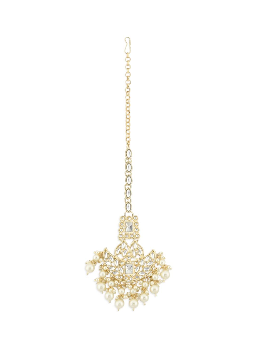 ZAVERI PEARLS Gold Tone Bridal Kundan Choker Necklace Earring Maangtikka & Ring Set For Women-ZPFK12218