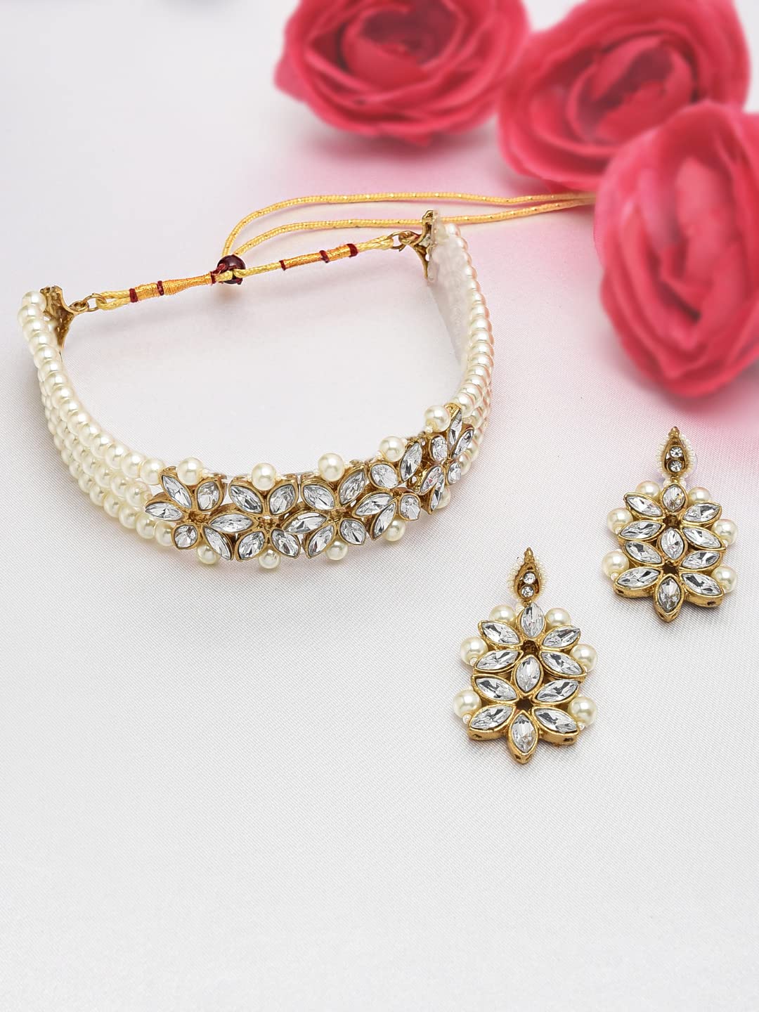 Flaunt Your Distinct Style Statement By Wearing This Necklace & Earring Set From The House Of Zaveri Pearls. We Also Have An Absolute Range Of Jewellery Set Such As Long Necklace, Layered Necklace, Multistrand Necklace, Choker, Bib Necklace, Collar Necklace, Princess Necklace, Moti Mala Set. Zaveri Pearls Brings An Exclusive Assortment Of Fashion Jewellery & Accessories Like Kundan Jewellery, Pearls Jewellery, Meenakari Or Enamel Jewellery, Temple Jewellery, Goddess Laxmi Jewellery, Lord Ganesh Jewellery, Radha Krishna Jewellery, Silver Or Oxidised Jewellery Used For Navratri, Peacock Inspired Jewellery, Floral Jewellery, Chunky Jewellery, Quirky Jewellery, Brass Jewellery, Vacation Jewellery, Casual Jewellery, Bridal Jewellery, Bridemaids Jewellery, Padmavati Inspired Jewellery, Multi-Color Jewellery, Minimal Jewellery, Traditional Or Ethnic Jewellery, Statement Jewellery, Contemporary Jewellery, Trendy, Stylish & Fancy Jewellery, Work Wear Jewellery, Western Jewellery, Animal Accents Jewellery, Combo Jewellery, Beaded Jewellery, Antique Jewellery, Rose Gold Jewellery. This Jewellery Can Be Used For Multiple Events, Occasions & Ceremonies Like Festivals, mehandi, Haldi, Sangeet, Engagement, Wedding, Destination Wedding, Reception, Baby Shower, Party Or Fashion Shows. It Can Also Be Best Pick For Trousseau Or Gifting.
