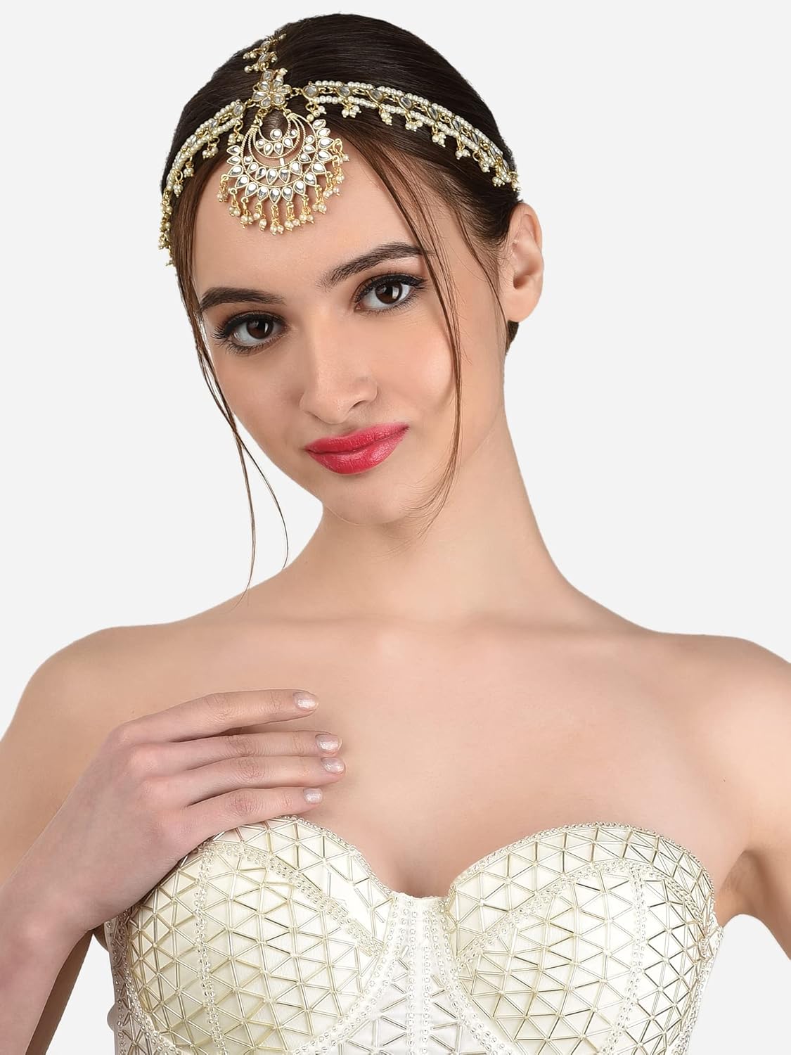 Zaveri Pearls Gold Tone Kundan Bridal MathaPatti Style Maangtikka For Women-ZPFK13117