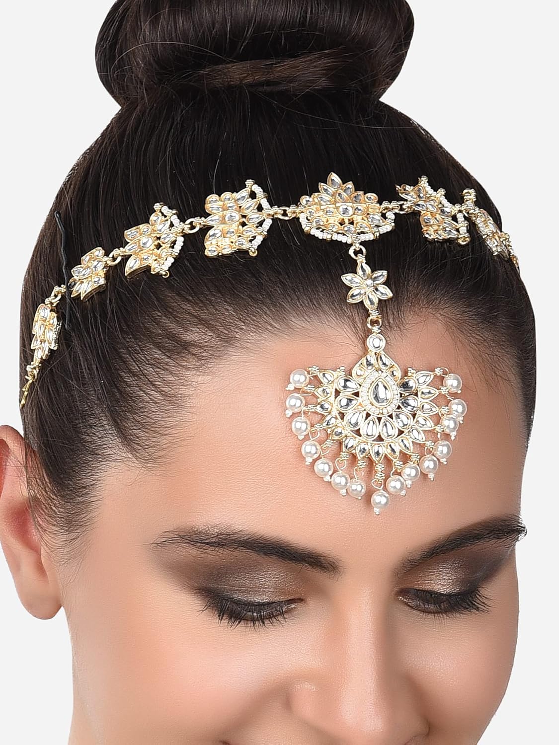 Zaveri Pearls Gold Tone Kundan & Pearls Floral Bridal Head Chain For Women-ZPFK14501