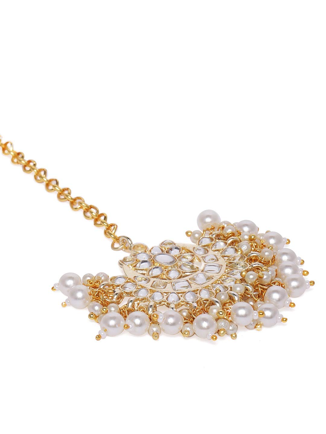 ZAVERI PEARLS Gold Tone Kundan & Pearls Wedding Collection Earring & Maangtikka Set For Women-ZPFK18621