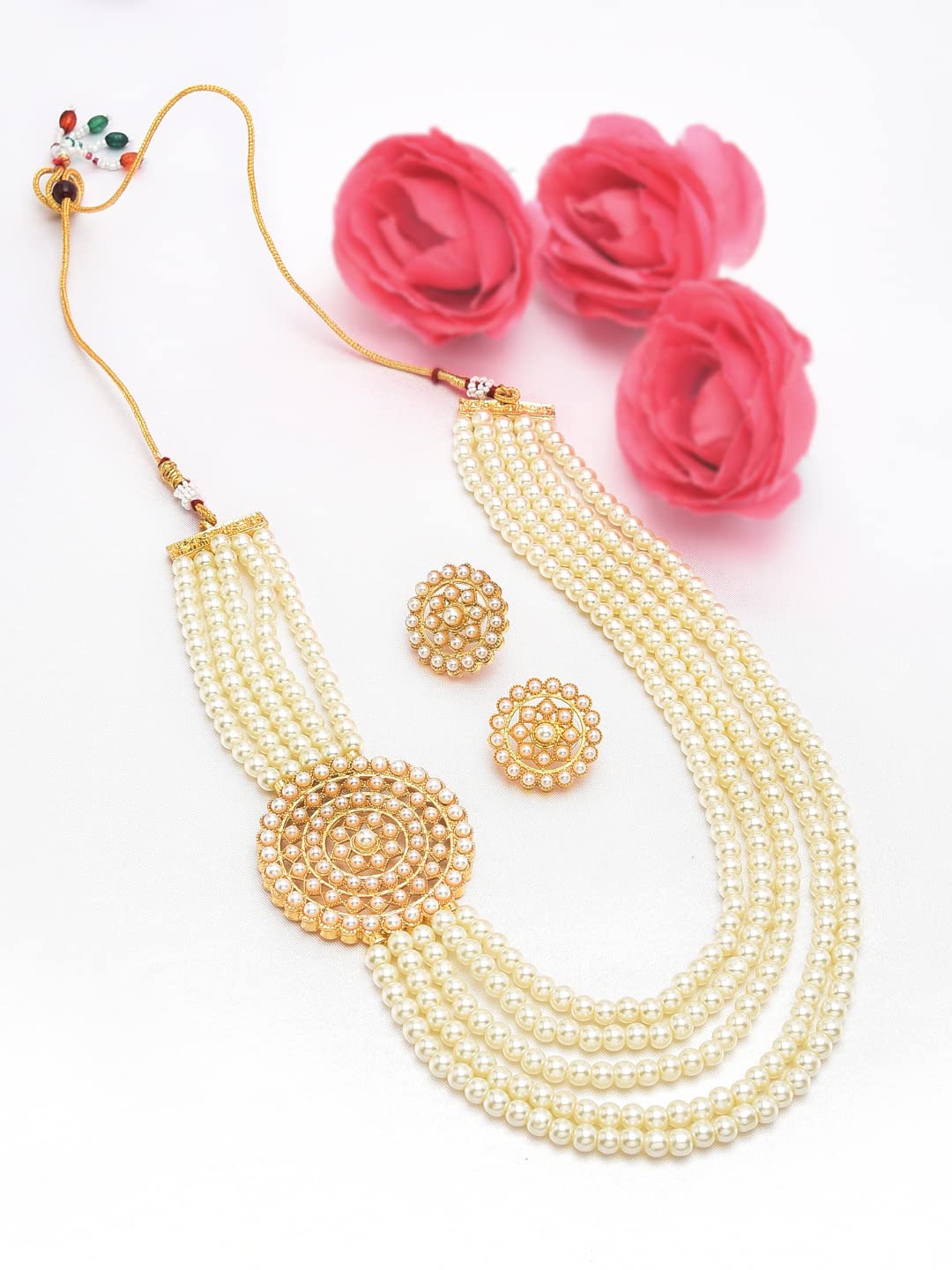 Flaunt Your Distinct Style Statement By Wearing This Necklace & Earring Set From The House Of Zaveri Pearls. We Also Have An Absolute Range Of Jewellery Set Such As Long Necklace, Layered Necklace, Multistrand Necklace, Choker, Bib Necklace, Collar Necklace, Princess Necklace, Moti Mala Set. Zaveri Pearls Brings An Exclusive Assortment Of Fashion Jewellery & Accessories Like Kundan Jewellery, Pearls Jewellery, Meenakari Or Enamel Jewellery, Temple Jewellery, Goddess Laxmi Jewellery, Lord Ganesh Jewellery, Radha Krishna Jewellery, Silver Or Oxidised Jewellery Used For Navratri, Peacock Inspired Jewellery, Floral Jewellery, Chunky Jewellery, Quirky Jewellery, Brass Jewellery, Vacation Jewellery, Casual Jewellery, Bridal Jewellery, Bridemaids Jewellery, Padmavati Inspired Jewellery, Multi-Color Jewellery, Minimal Jewellery, Traditional Or Ethnic Jewellery, Statement Jewellery, Contemporary Jewellery, Trendy, Stylish & Fancy Jewellery, Work Wear Jewellery, Western Jewellery, Animal Accents Jewellery, Combo Jewellery, Beaded Jewellery, Antique Jewellery, Rose Gold Jewellery. This Jewellery Can Be Used For Multiple Events, Occasions & Ceremonies Like Festivals, mehandi, Haldi, Sangeet, Engagement, Wedding, Destination Wedding, Reception, Baby Shower, Party Or Fashion Shows. It Can Also Be Best Pick For Trousseau Or Gifting.