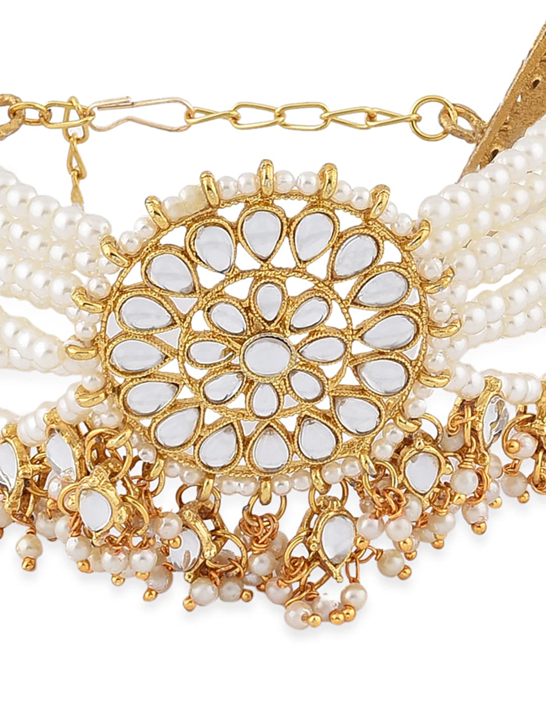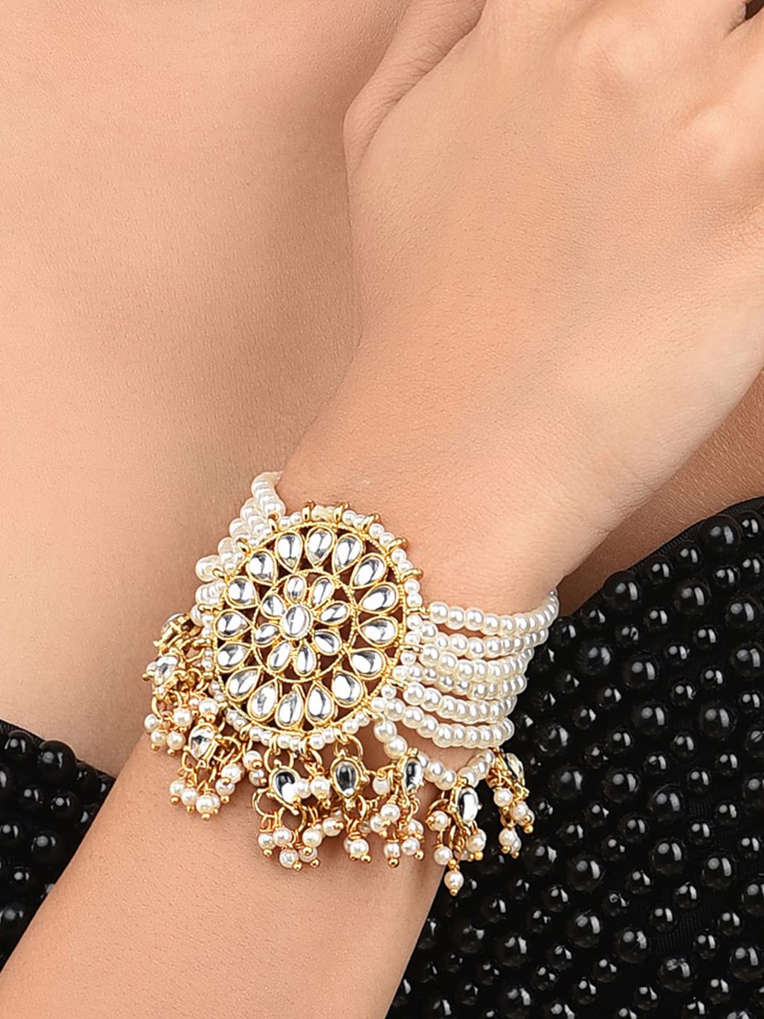 ZAVERI PEARLS Gold Tone Pearls & Kundan Designer Bracelet For Women-ZPFK9167