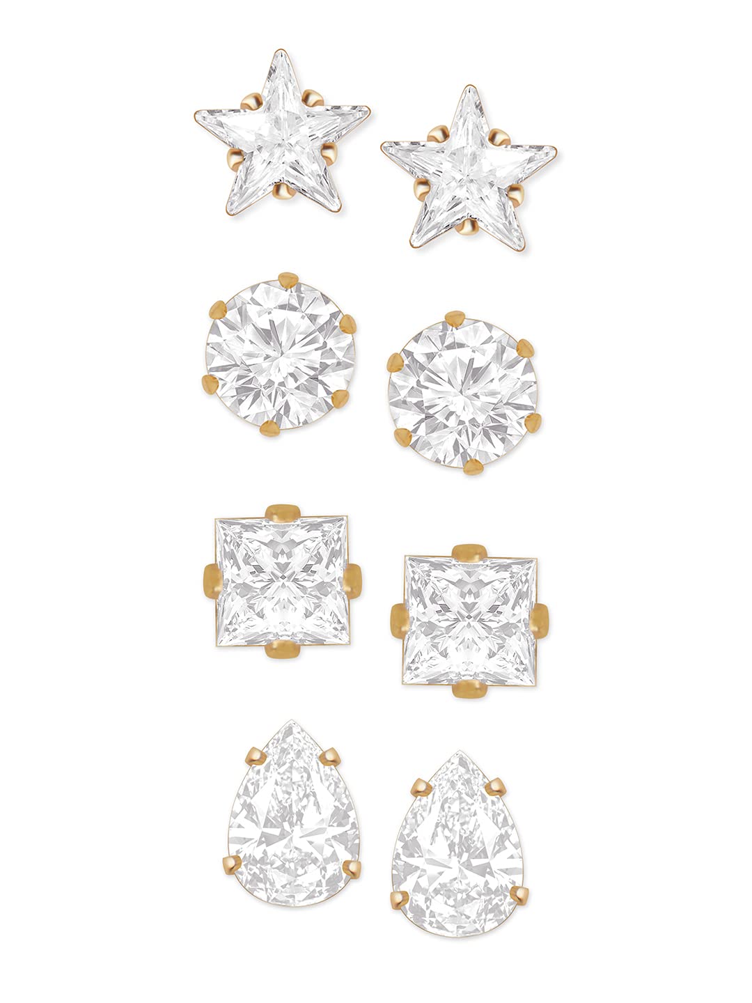 Zaveri Pearls Gold Tone Set of 4 Contemporary Cubic Zirconia Brass Stud Earrings For Women-ZPFK10964