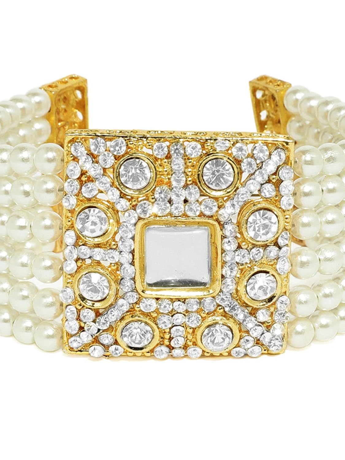 ZAVERI PEARLS Gold Tone Traditional Pearl & Austrian Diamonds Bracelet For Women-ZPFK7395