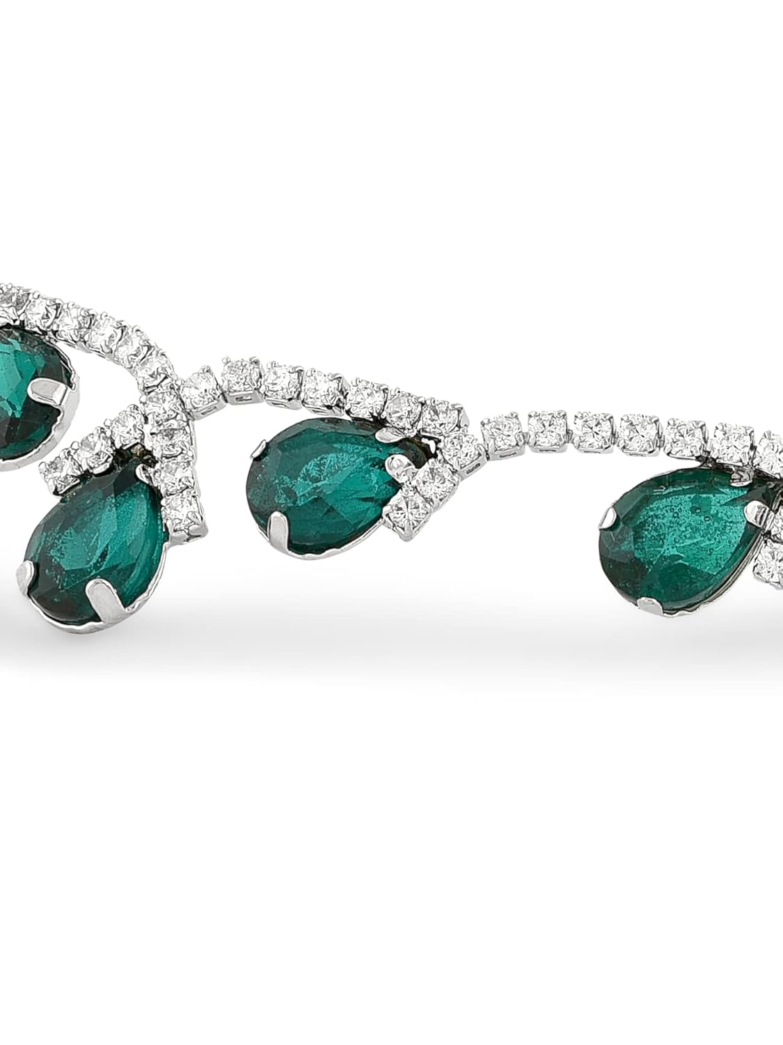 ZAVERI PEARLS Green Dazzling Austrian Diamonds Party Necklace Earring & Ring Set For Women-ZPFK15942