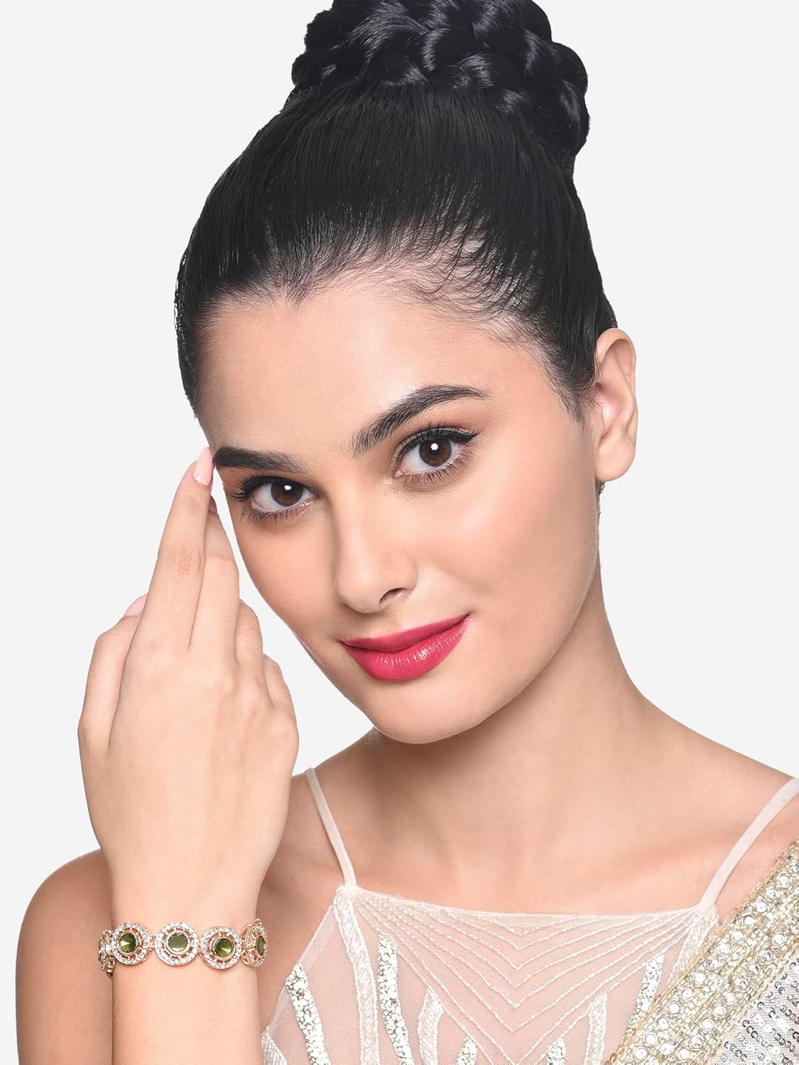 ZAVERI PEARLS Green Round Stones & Dazzling Austrian Diamond Ethnic Bracelet For Women-ZPFK16410