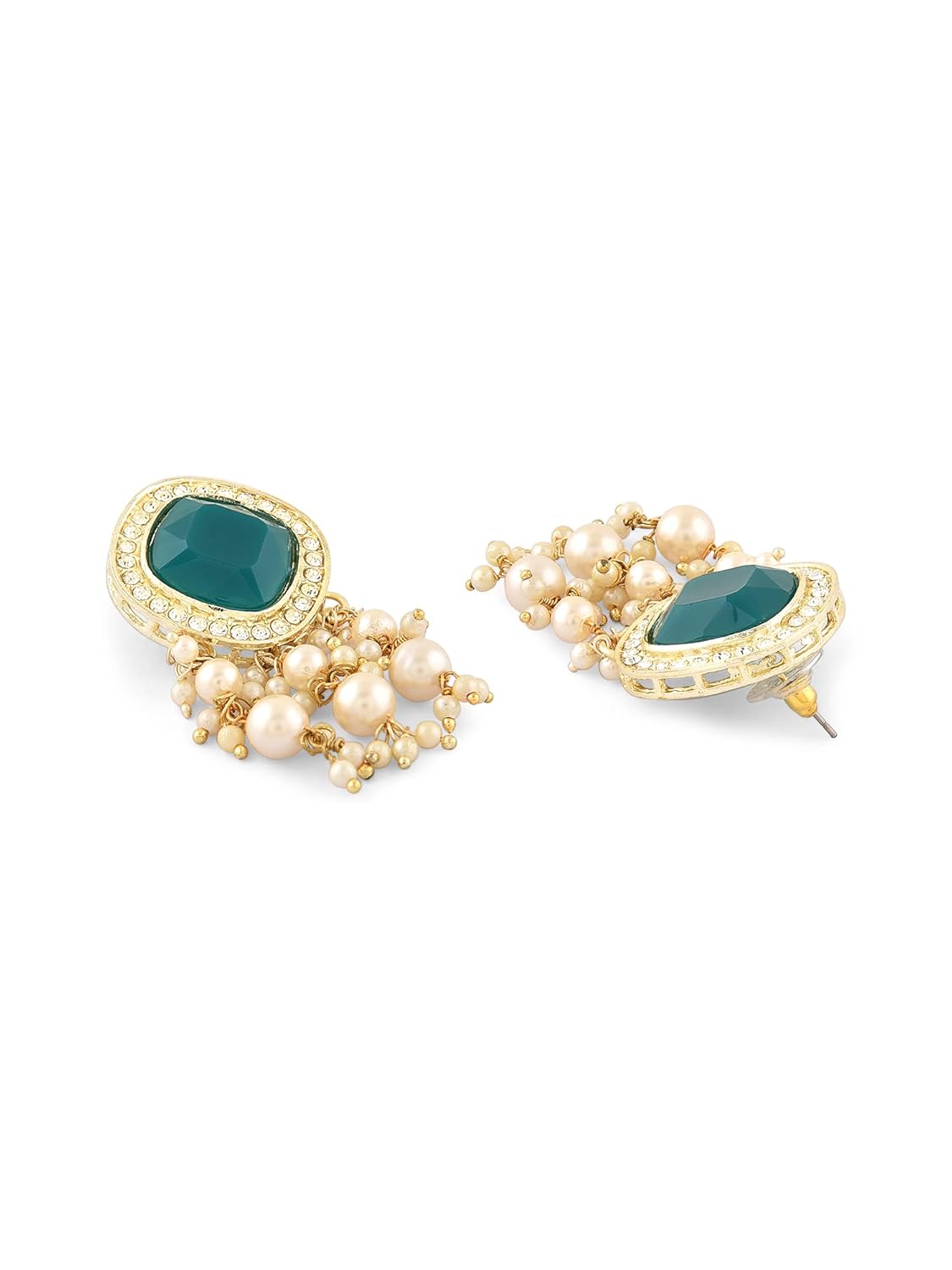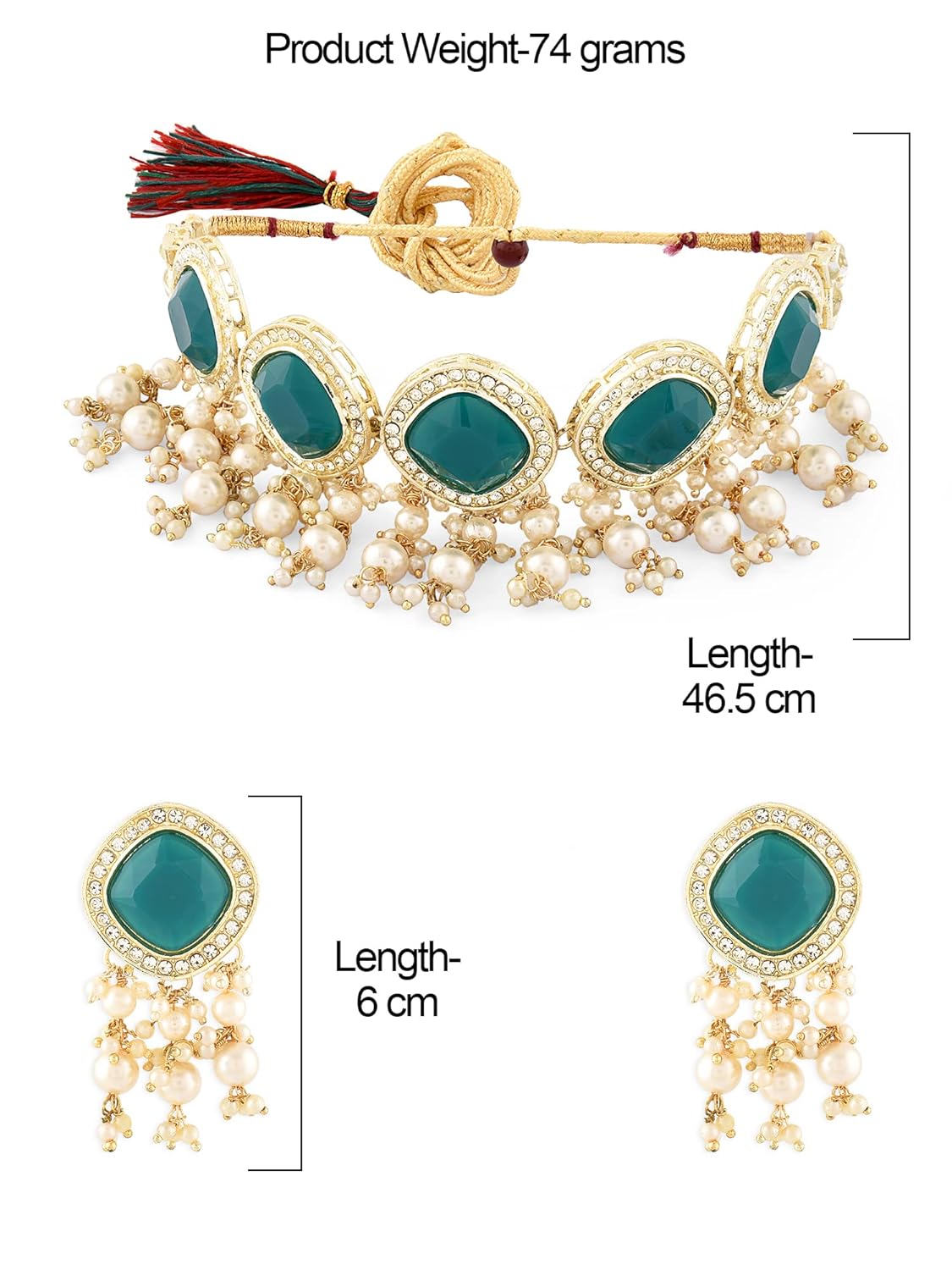 ZAVERI PEARLS Green Statement Stones Cluster Beads Choker Necklace Earring Ring Set For Women-ZPFK15934