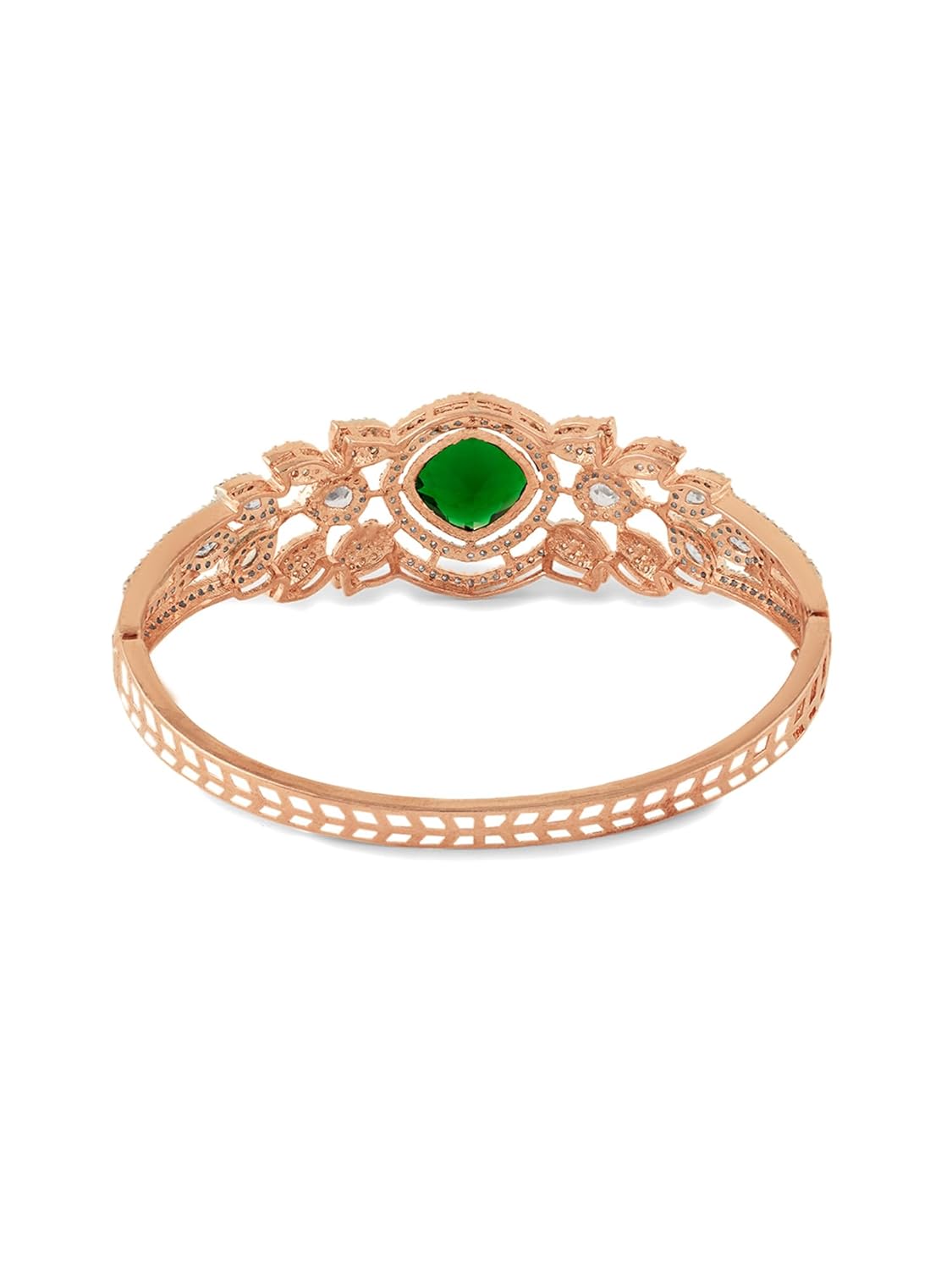 ZAVERI PEARLS Green Stone Dazzling Cubic Zirconia Two Tone Brass Kada Bracelet For Women-ZPFK21579