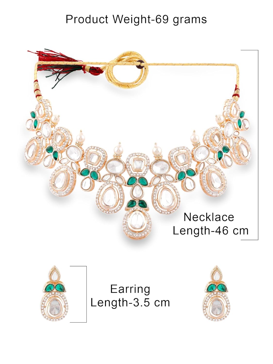 ZAVERI PEARLS Green Stones Dazzling Austrian Diamonds Rajwada Necklace, Earring & Ring Set For Women-ZPFK17287