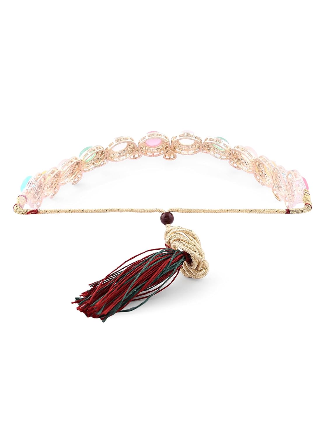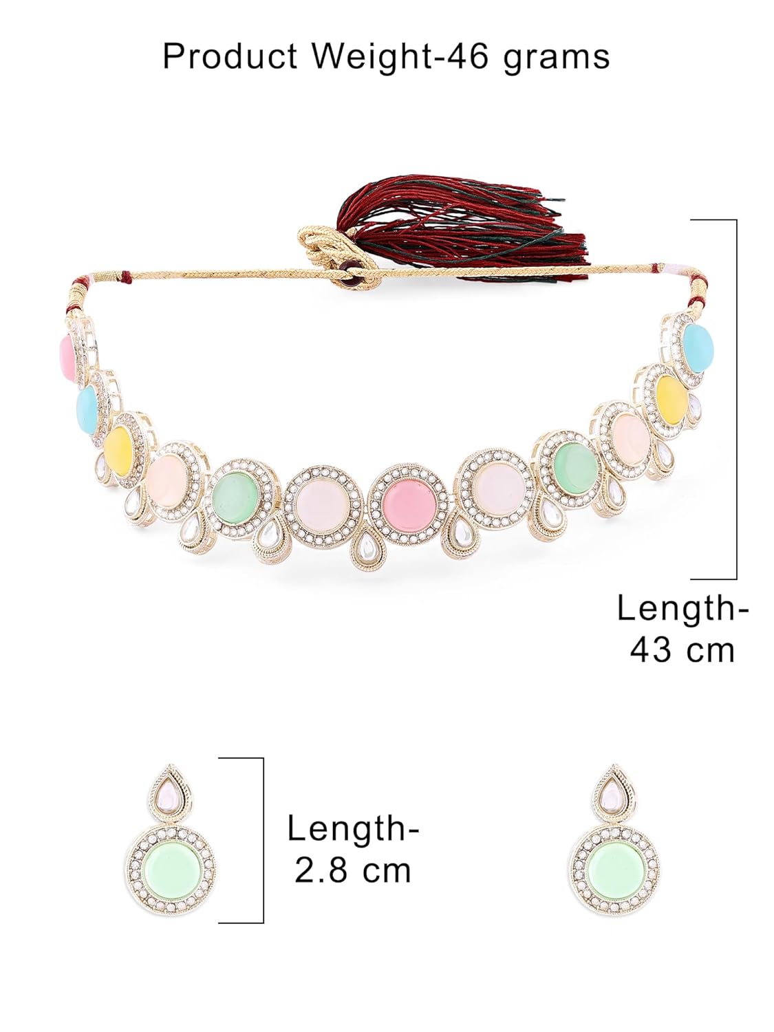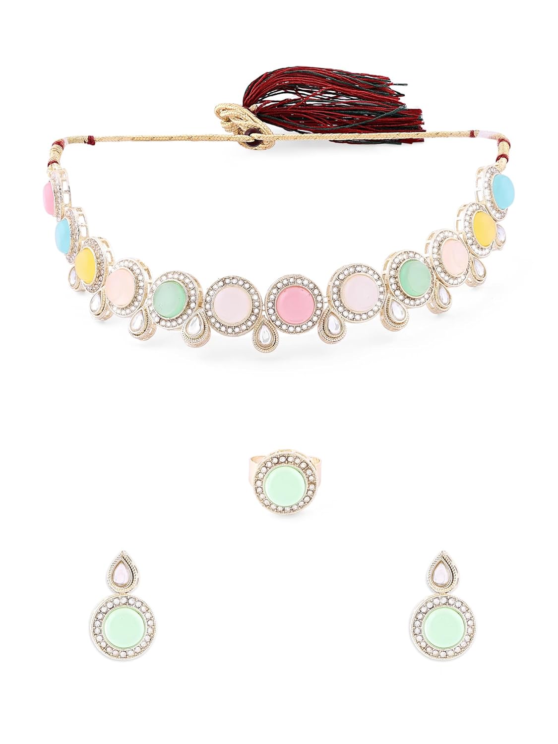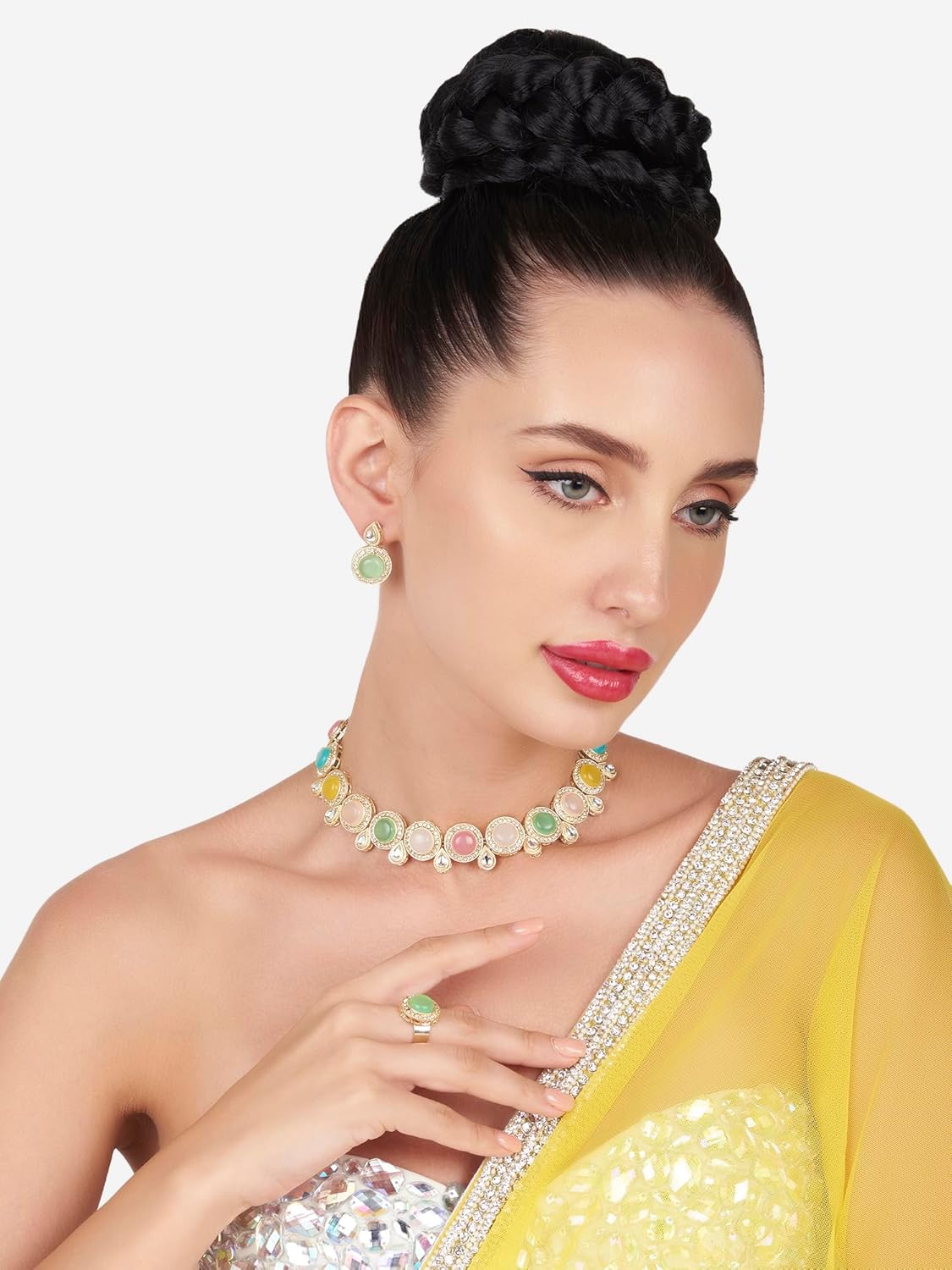 ZAVERI PEARLS Multicolor Stones Austrian Diamonds Kundan Necklace Earring & Ring Set For Women-ZPFK16116