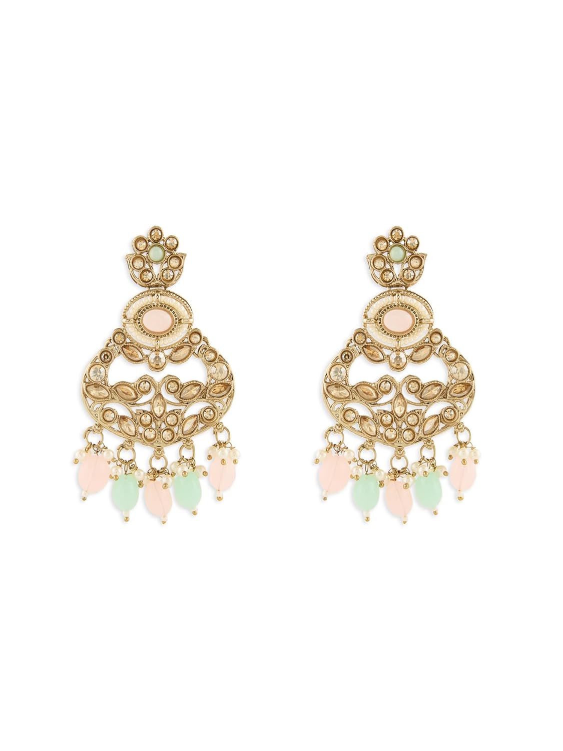 ZAVERI PEARLS Pink Mint Green Stones Beads Dazzling Necklace Earring & Maangtikka Set For Women-ZPFK21595