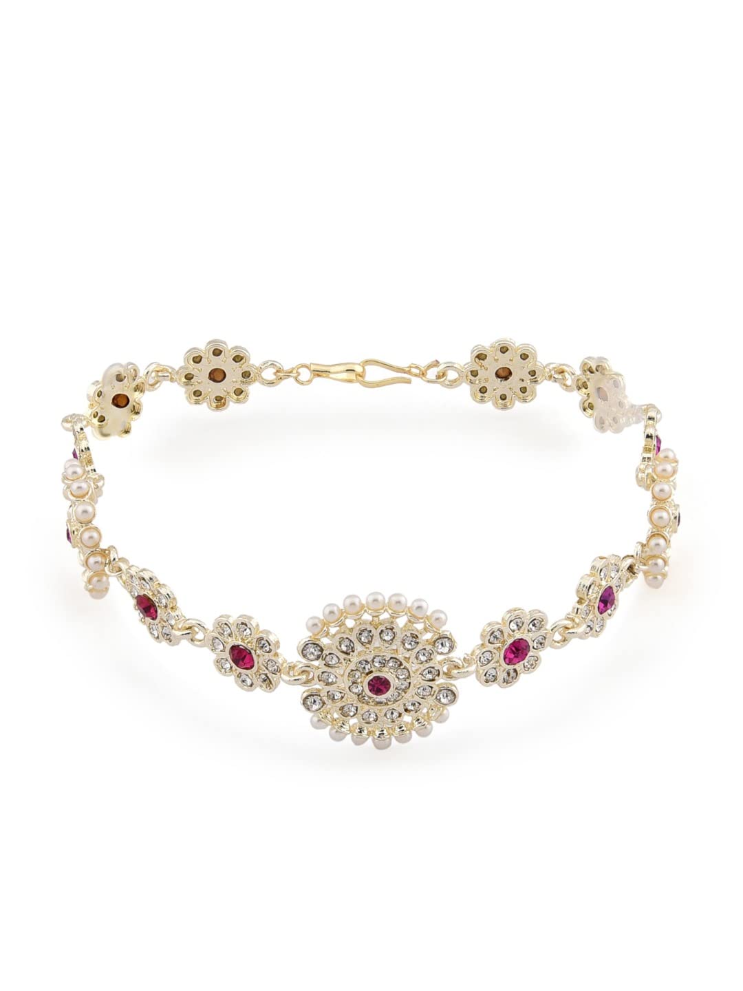 Zaveri Pearls Pink & White Dazzling Diamonds Embellished Head Chain For Women-ZPFK12225