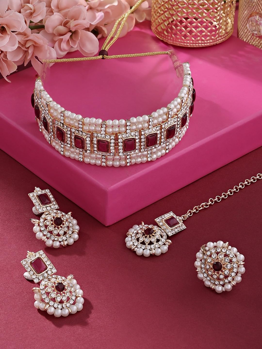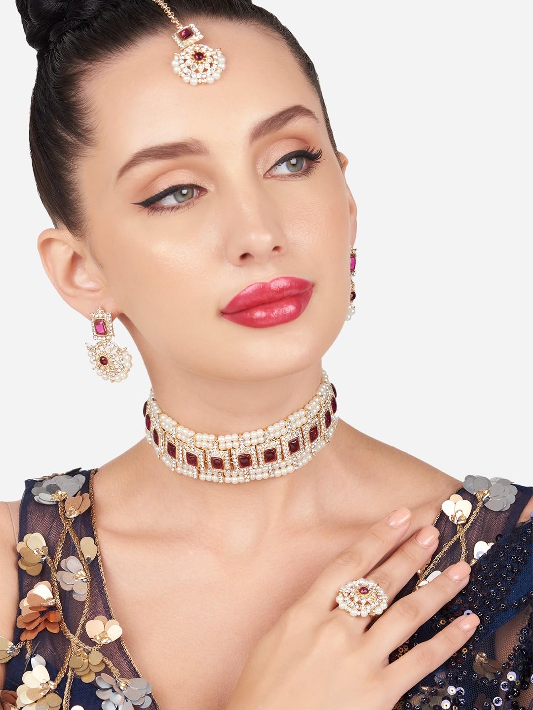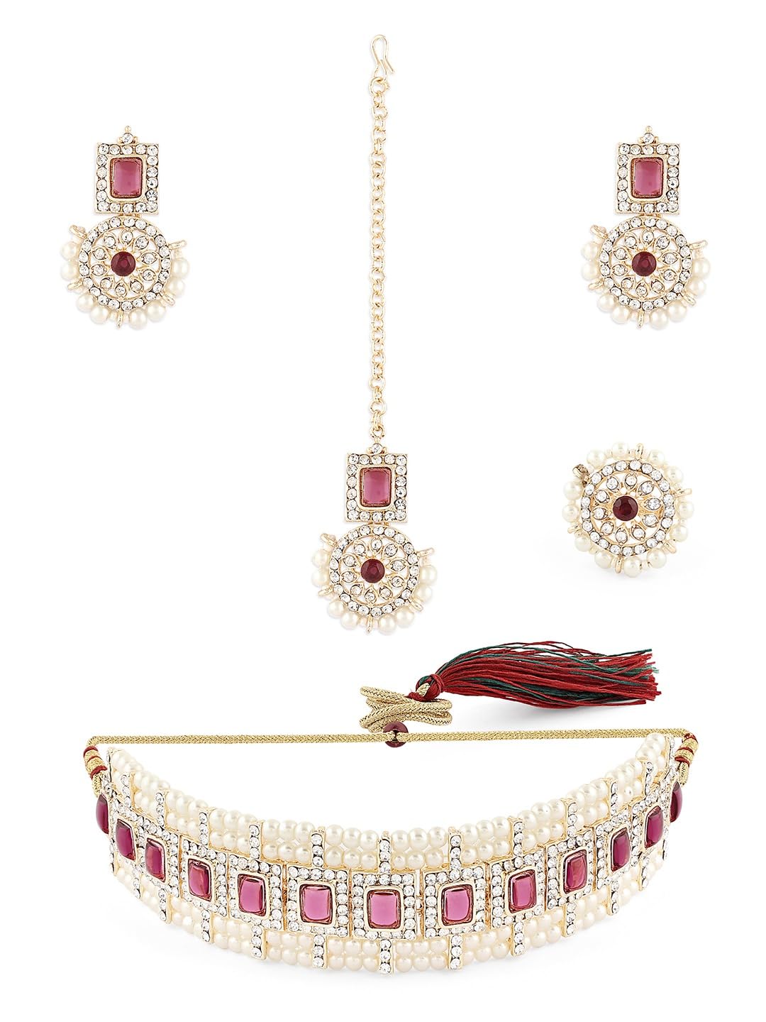 Included Components : 1 Maangtikka, Earring, Necklace, Ring