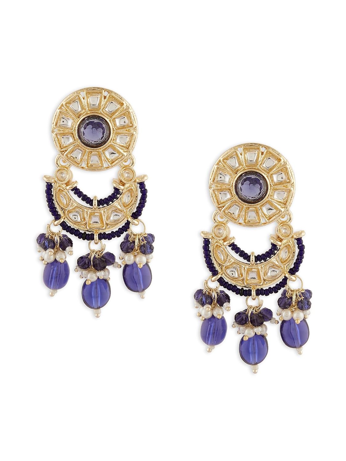 ZAVERI PEARLS Purple Stones Multistrand Beaded Kundan Choker Necklace & Earring Set For Women-ZPFK17609