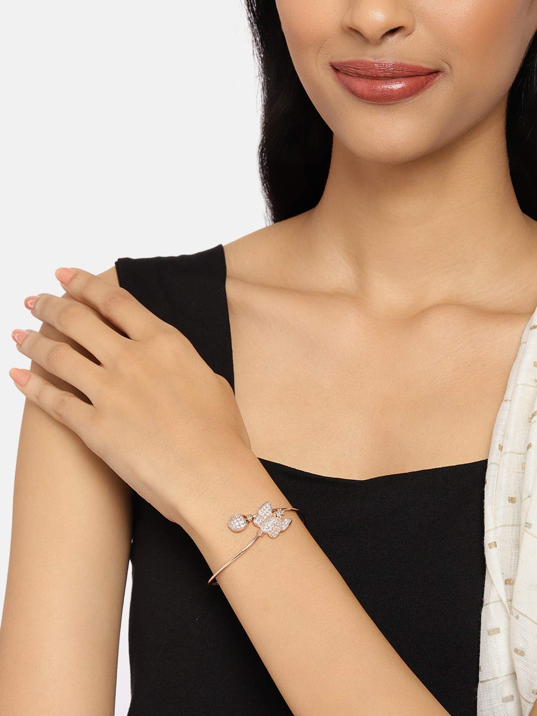 ZAVERI PEARLS Rose Gold Cubic Zirconia Butterfly Contemporary Bangle Style Brass Kada For Women-ZPFK9947