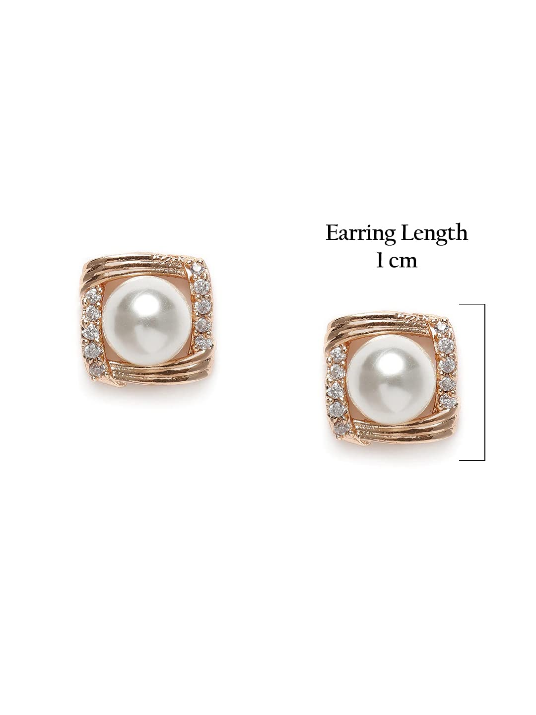 Zaveri Pearls Rose Gold Cubic Zirconia & Pearl Contemporary Brass Stud Earring For Women-ZPFK10092