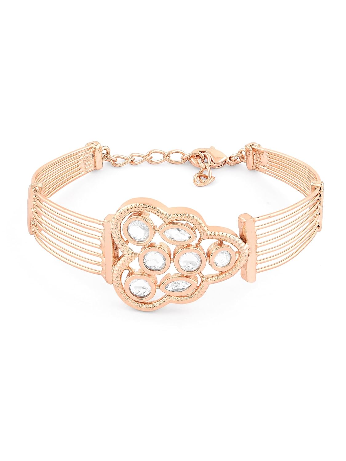 ZAVERI PEARLS Rose Gold Dazzling Cubic Zirconia Brass Bangle Style Kada Bracelet For Women -ZPFK16200