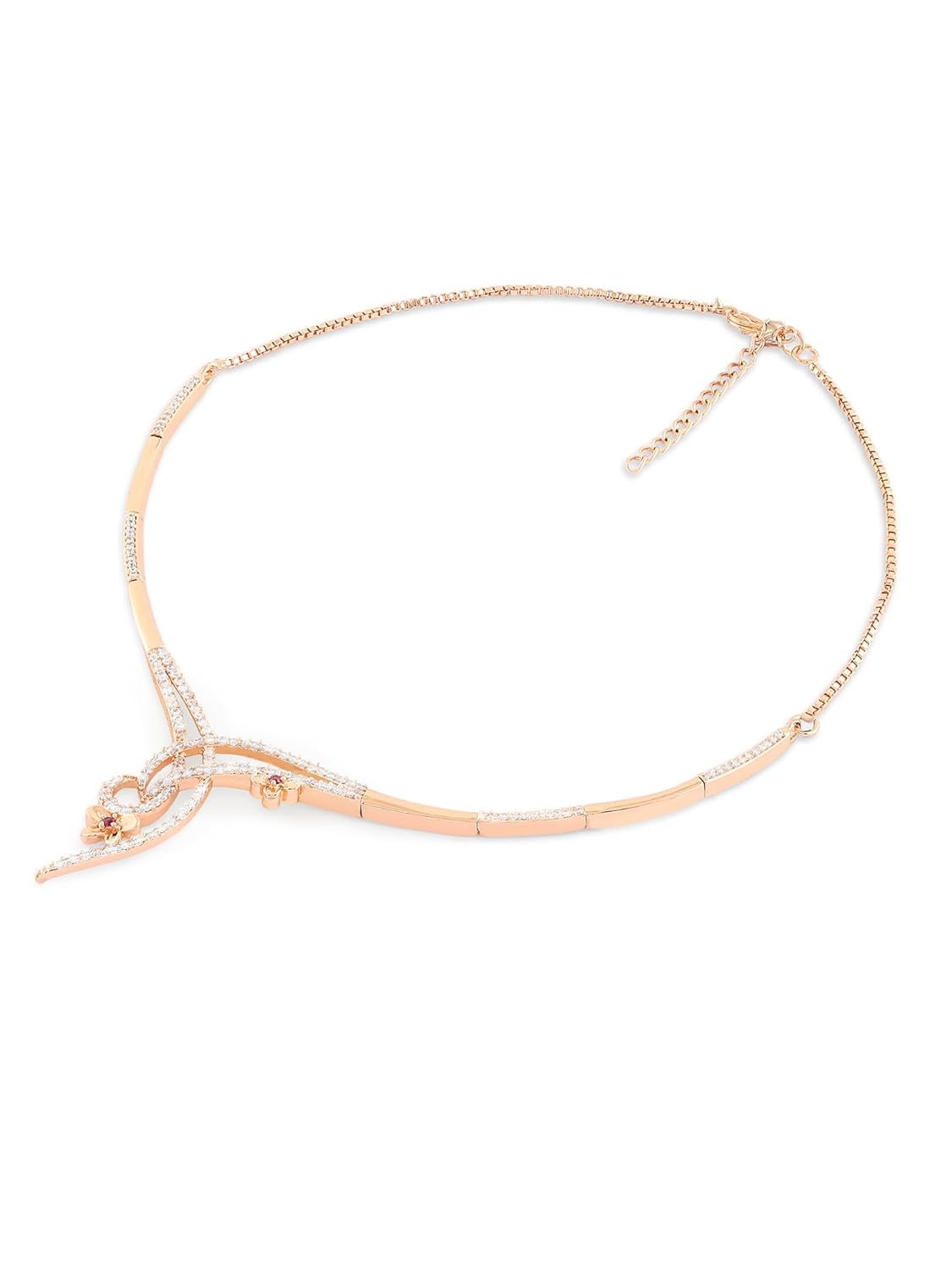 ZAVERI PEARLS Rose Gold Tone Cubic Zirconia Embellished Contemporary Brass Necklace Earring Set For Women-ZPFK17231
