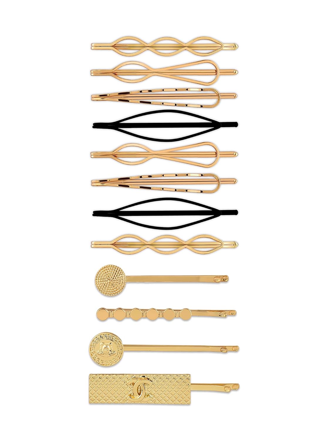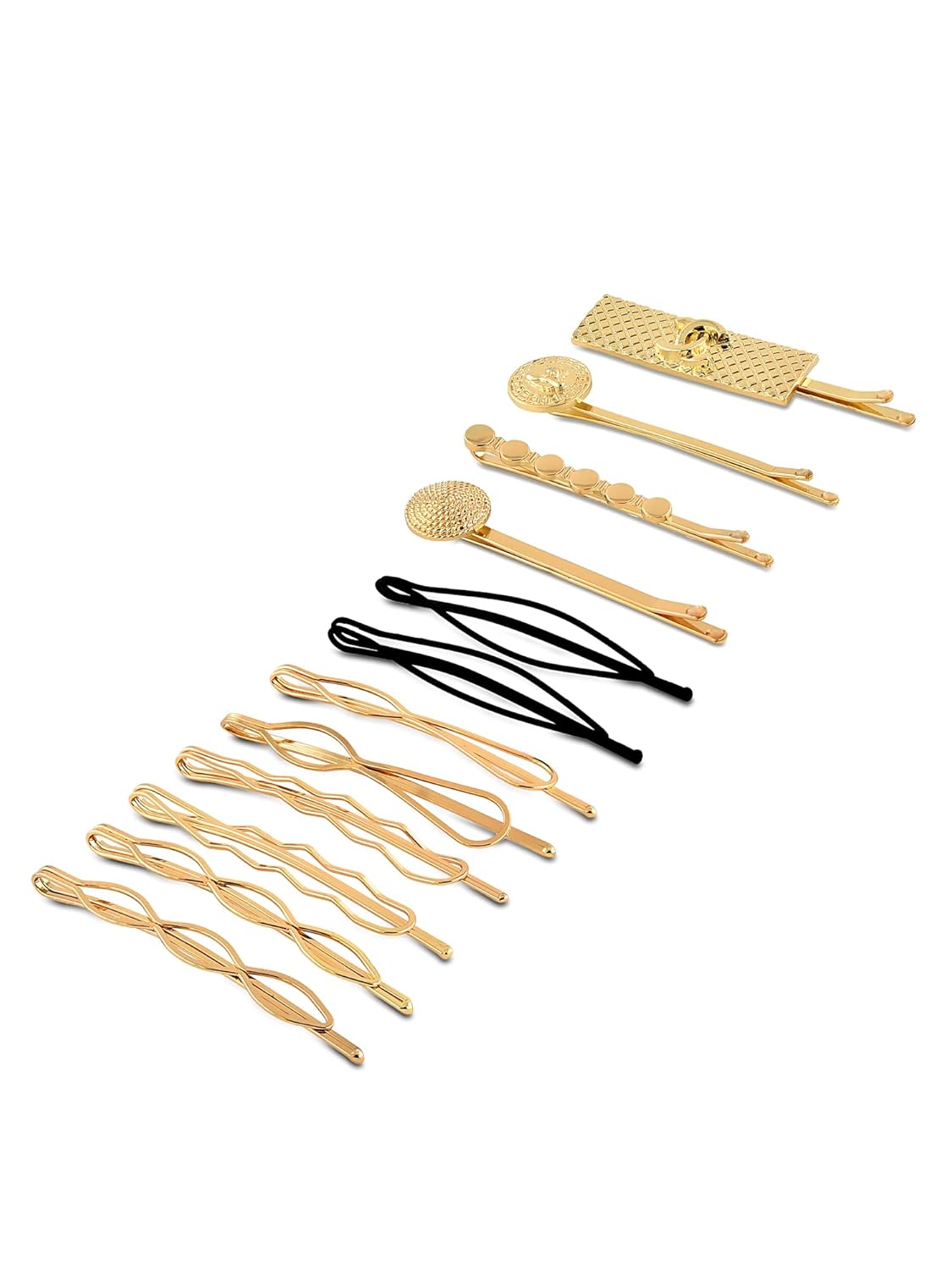 Zaveri Pearls Set of 12 Gold Tone Contemporary Party Bling Hair Pins For Women-ZPFK15057