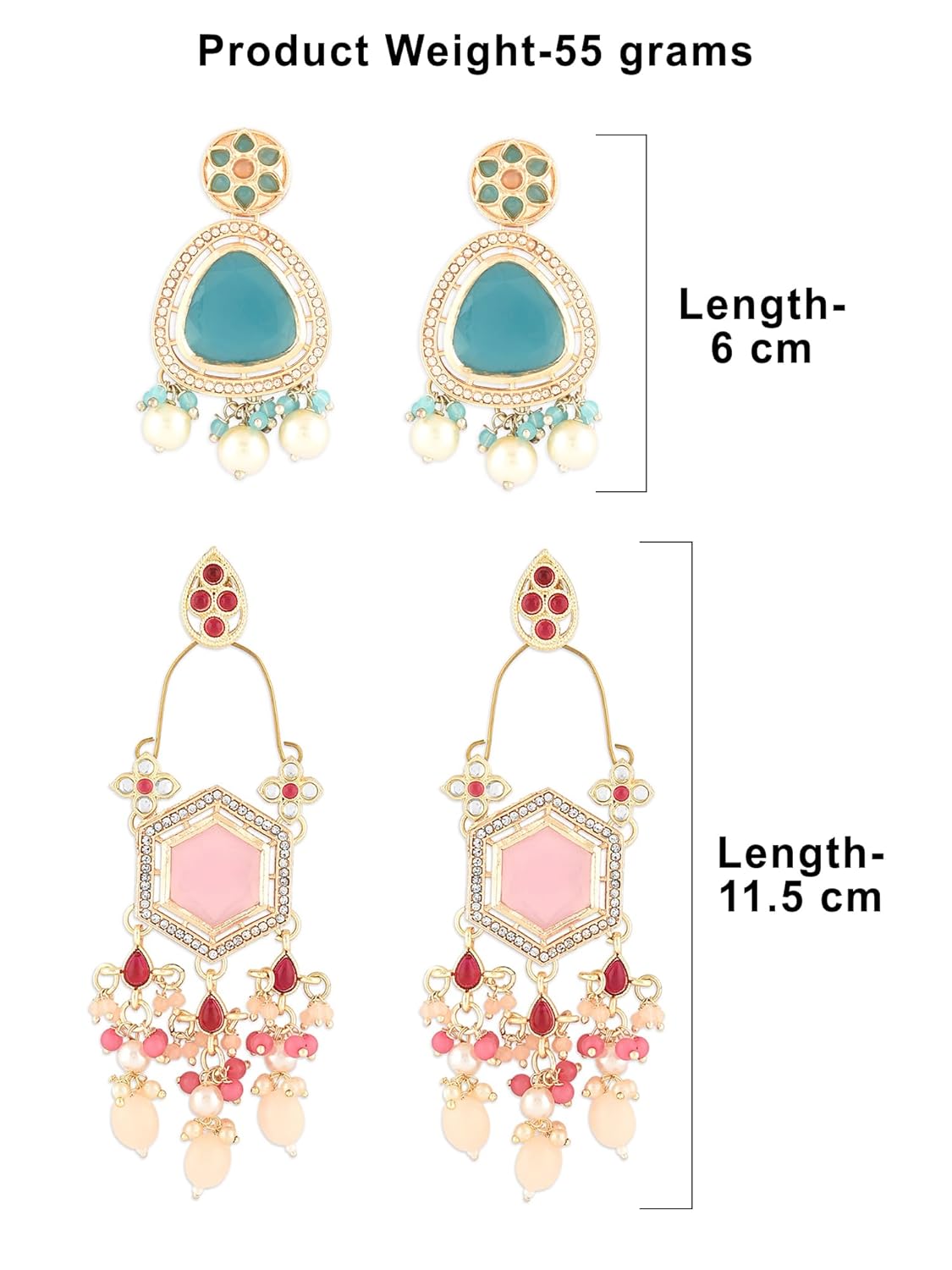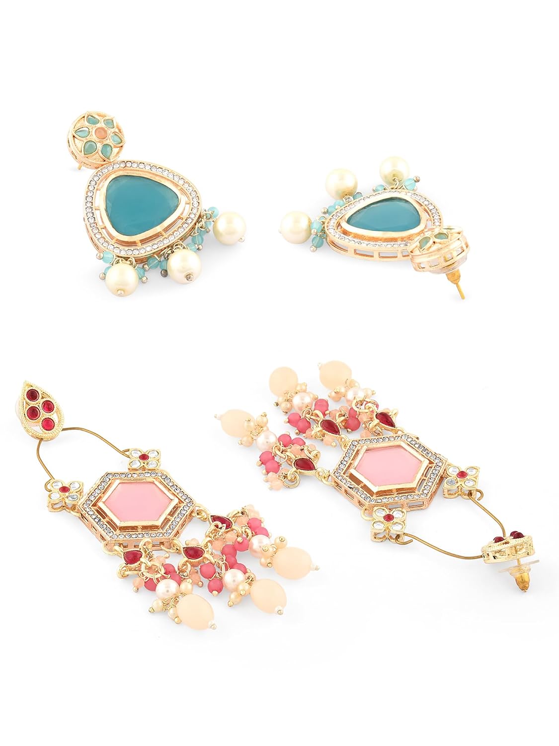 Zaveri Pearls Set Of 2 Blue & Pink Kundan & Austrian DiamondsTraditional Dangle Drop Earring For Women-ZPFK16871