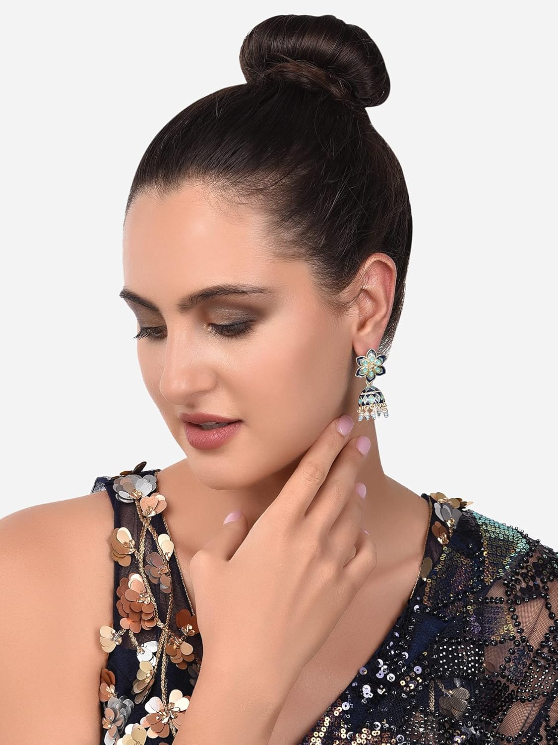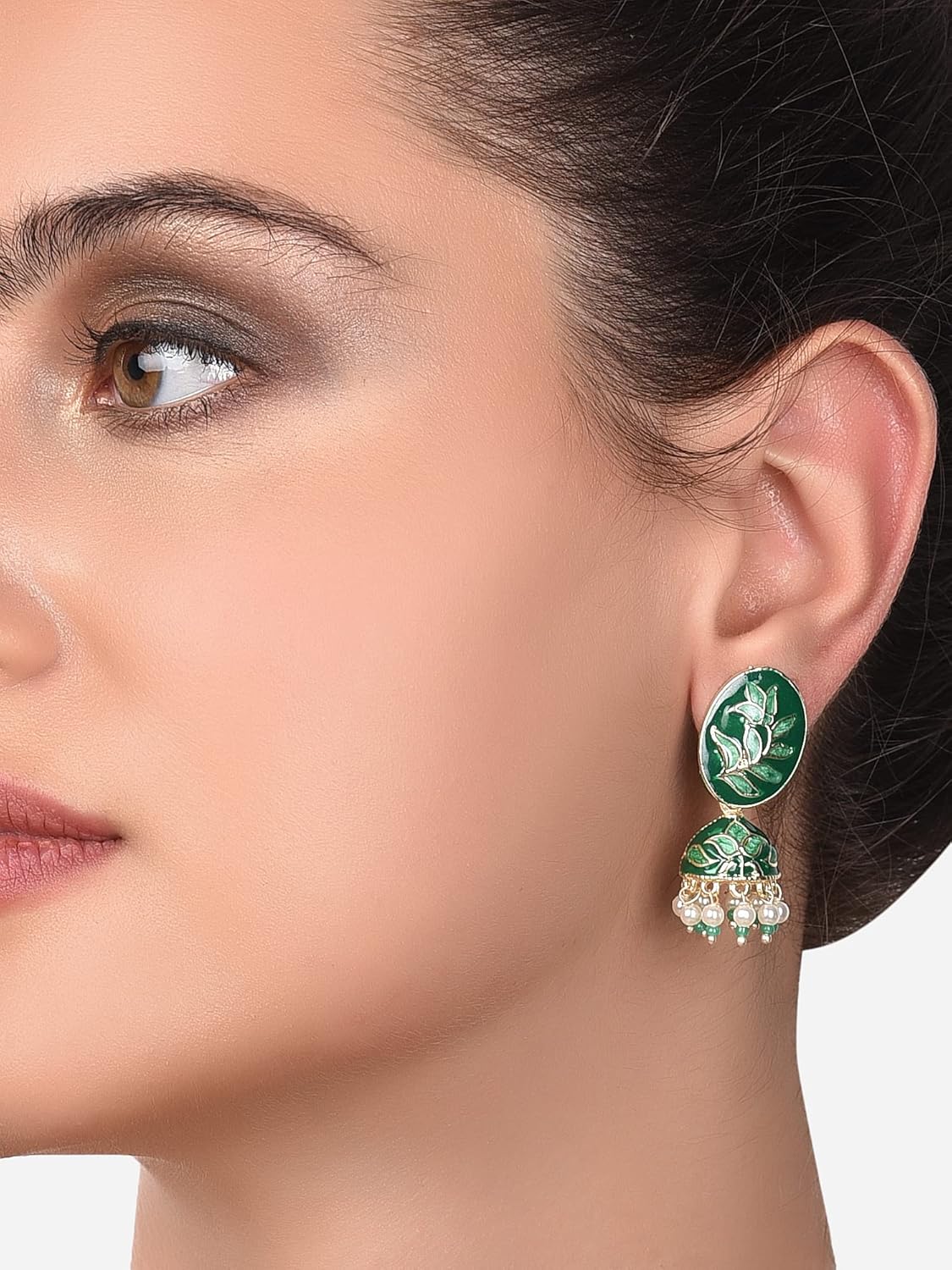 Zaveri Pearls Set Of 2 Green & Blue Meenakari Ethnic Jhumki Earrings For Women-ZPFK18812