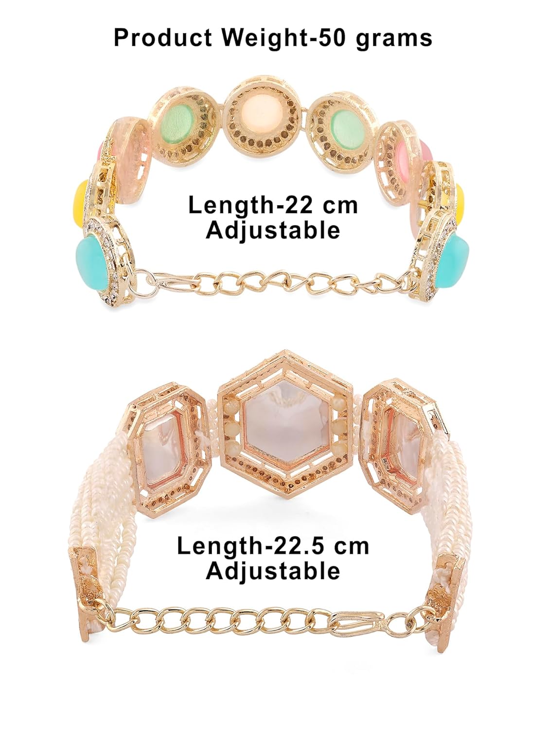 In Honour Of Our Love For Bracelets, We’ve Put Together An Ample Range Of Flattering Ethnic Kundan Bracelets. Add Them To Your Collection, And You’ll Have A Bracelet To Match Every Traditional Outfit! Very Elegant, Glam And Stylish, This Bracelet Can Effortlessly Be Styled With Traditional Or Indo-Western Outfits.