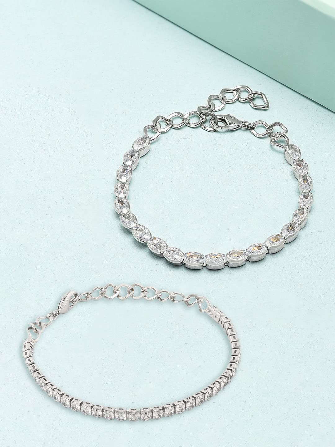 ZAVERI PEARLS Set of 2 Silver Tone Contemporary Cubic Zirconia Brass Tennis Bracelets For Women-ZPFK13466
