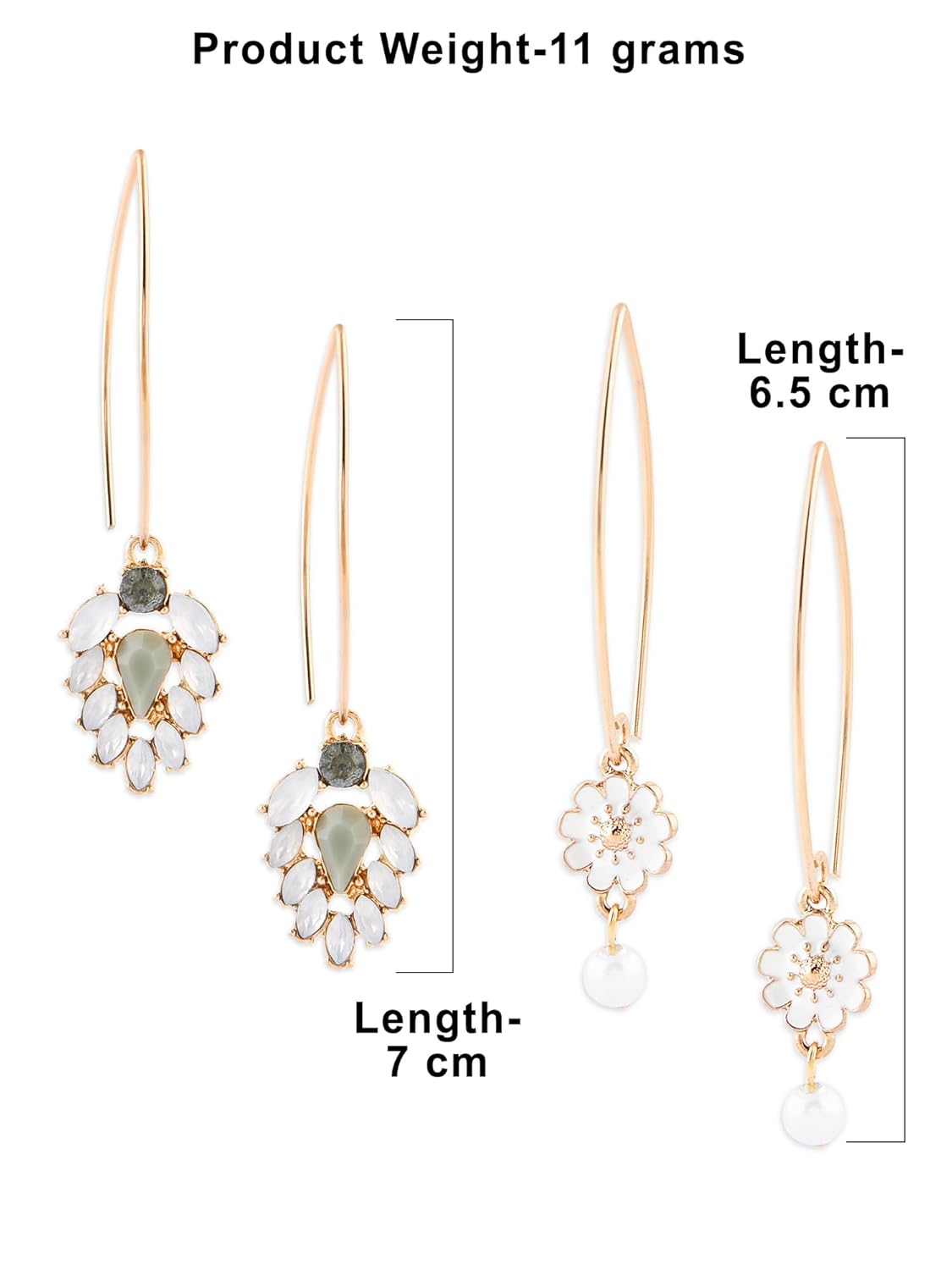 Zaveri Pearls Set Of 2 White Tiny Enamel Flower Contemporary Drop Earring For Women-ZPFK16883