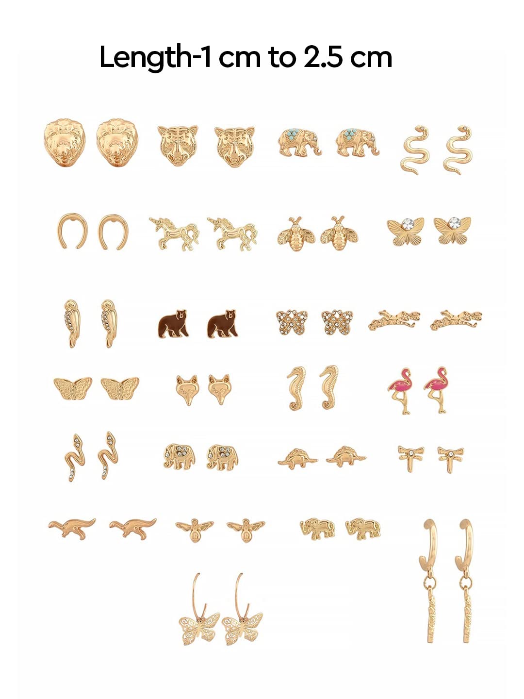 Zaveri Pearls Set of 25 Gold Tone Contemporary Classy Stud & Drop Earrings For Women-ZPFK15073