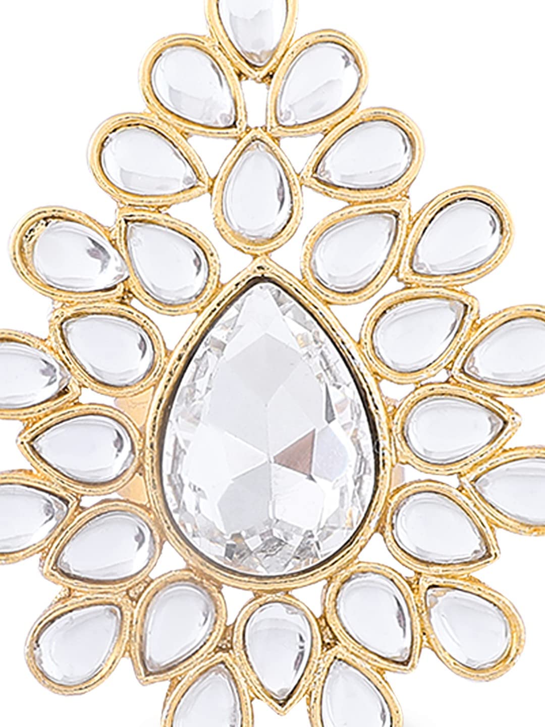 Looking For The Perfect Ring? Well!!! You’ve Just Found It. This Dazzling Ring Is Perfectly Crafted To Suit You. Made With Care & Adorned With An Intricate Detailing. Zaveri Pearls Also Brings An Exclusive Assortment Of Fashion Jewellery & Accessories Like Kundan Jewellery, Pearls Jewellery, Meenakari Or Enamel Jewellery, Temple Jewellery, Goddess Laxmi Jewellery, Lord Ganesh Jewellery, Radha Krishna Jewellery, Silver Or Oxidised Jewellery Used For Navratri, Peacock Inspired Jewellery, Floral Jewellery, Chunky Jewellery, Quirky Jewellery, Brass Jewellery, Vacation Jewellery, Casual Jewellery, Bridal Jewellery, Bridemaids Jewellery, Padmavati Inspired Jewellery, Multi-Color Jewellery, Minimal Jewellery, Traditional Or Ethnic Jewellery, Statement Jewellery, Contemporary Jewellery, Trendy, Stylish & Fancy Jewellery, Work Wear Jewellery, Western Jewellery, Animal Accents Jewellery, Combo Jewellery, Beaded Jewellery, Antique Jewellery, Rose Gold Jewellery, Gold Jewellery. This Jewellery Can Be Used For Multiple Events, Occasions & Ceremonies Like Festivals, Mehandi, Haldi, Sangeet, Engagement, Wedding, Destination Wedding, Reception, Baby Shower, Party Or Fashion Shows. It Can Also Be Best Pick For Trousseau Or Gifting.