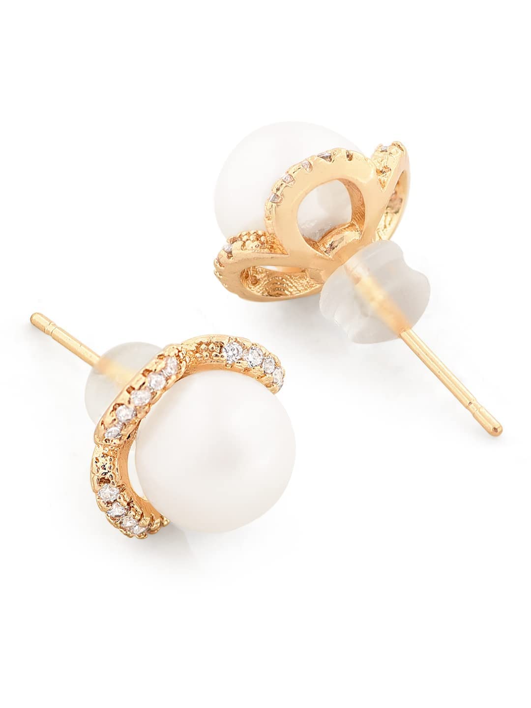 Zaveri Pearls White Freshwater Pearl & Cubic Zirconia Brass Studs Earring For Women-ZPFK11389