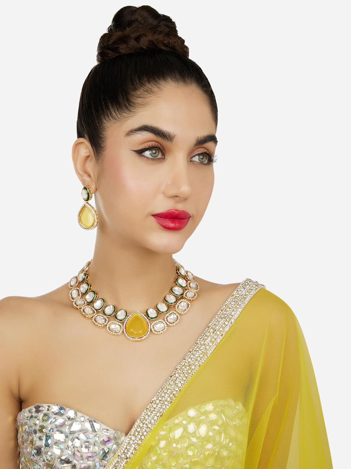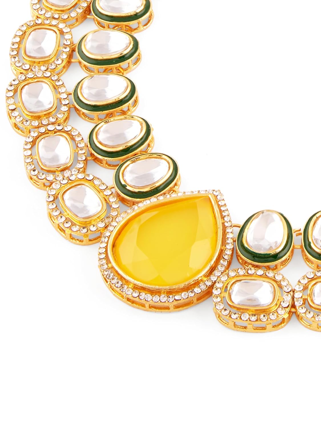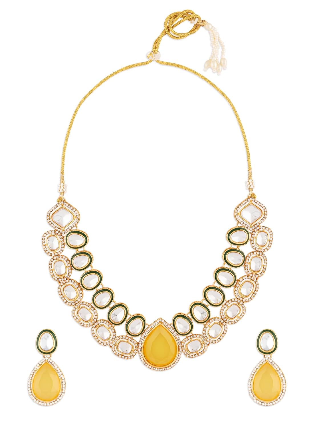 ZAVERI PEARLS Yellow Stone Green Meenakari Austrian Diamonds Embellished Necklace & Earring Set For Women-ZPFK18066