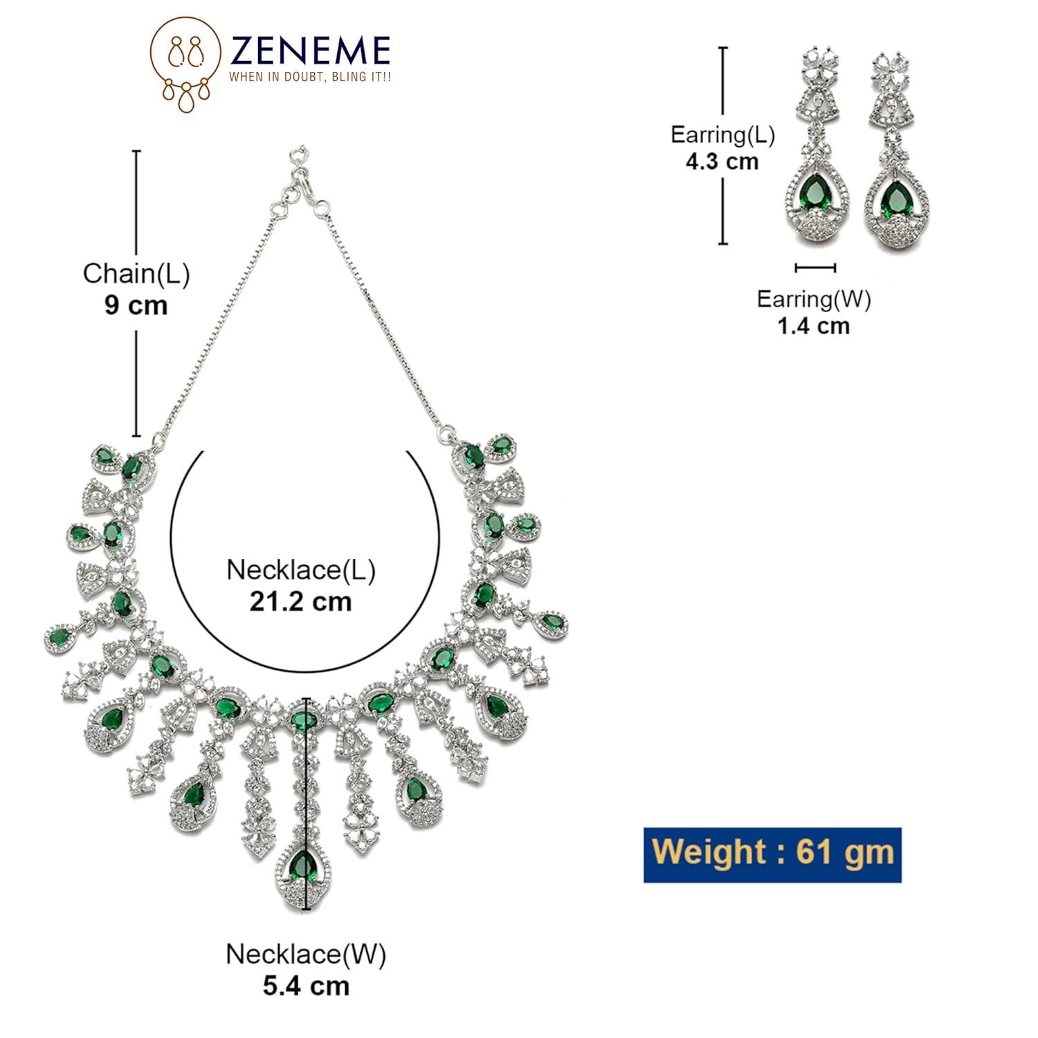 ZENEME presents this latest Rhodium-Plated jewellery set stylish necklace set for women. This casual or wedding party wear rhodium plated necklace set for women is made of fine quality material which looks stylish and goes perfect with any attire. This traditional necklace set for women is perfectly suited for wedding or party wear. ZENEME is a well known brand across fashion jewellery sector. ZENEME has huge collection of latest statement haram necklace jewellery, traditional necklace set, south indian type Lakshmi temple pendant set and other jewellery accessories which includes fancy bangles for women, wedding bangles, ear cuffs, traditional bangles kada, neck choker, fashion party wear necklace for girls and jhumki jhumka earrings. ZENEME is pioneer of imitation jewellery and design pearl necklace set for women and american diamond hangings party wear stylish earrings. ZENEME fashion and traditional jewellery give true value for your money. buy ZENEME trendy artificial jewellery from amazon in offer. these are also ideal for special birthday gifts for girls, wife, love valentine gifts for girlfriend, wedding gifts and anniversary gifts.
