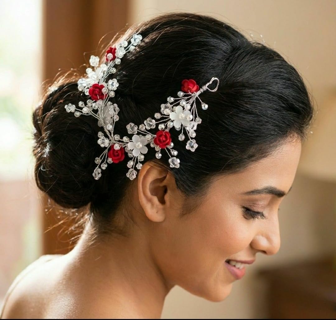 Zerolex Hair Accessories For Women’s & Girls For Wedding – Artificial Flowers & Pearl Style Juda Bun Accessories – Floral Bridal Brooch & Hair Pins – Hairstyle Decoration Bride Clips (1-Pcs) (Rosr Pearl Hair Pin)