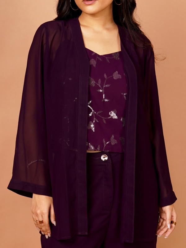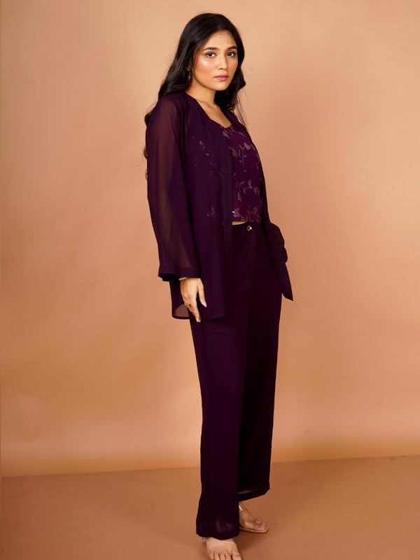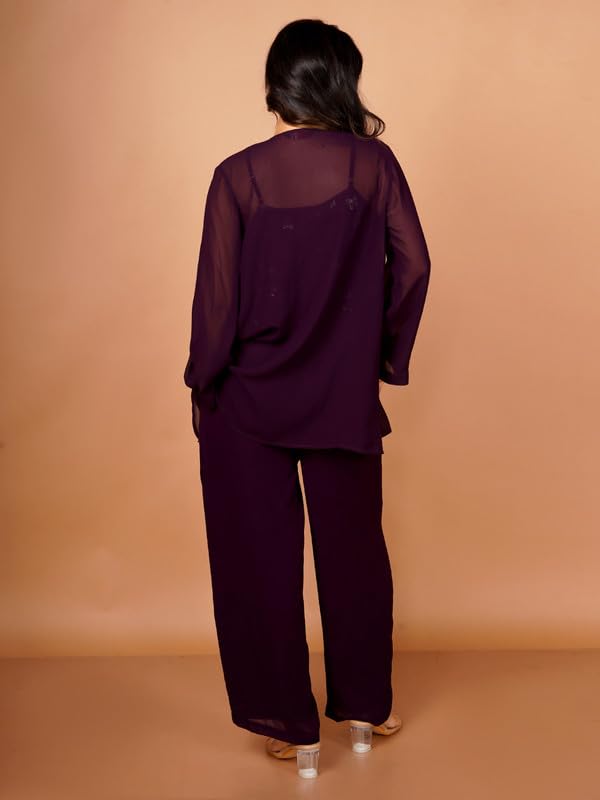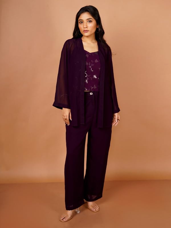 Zink London Women’s Purple Embroidered Basic 3-Piece Co-Ord Set